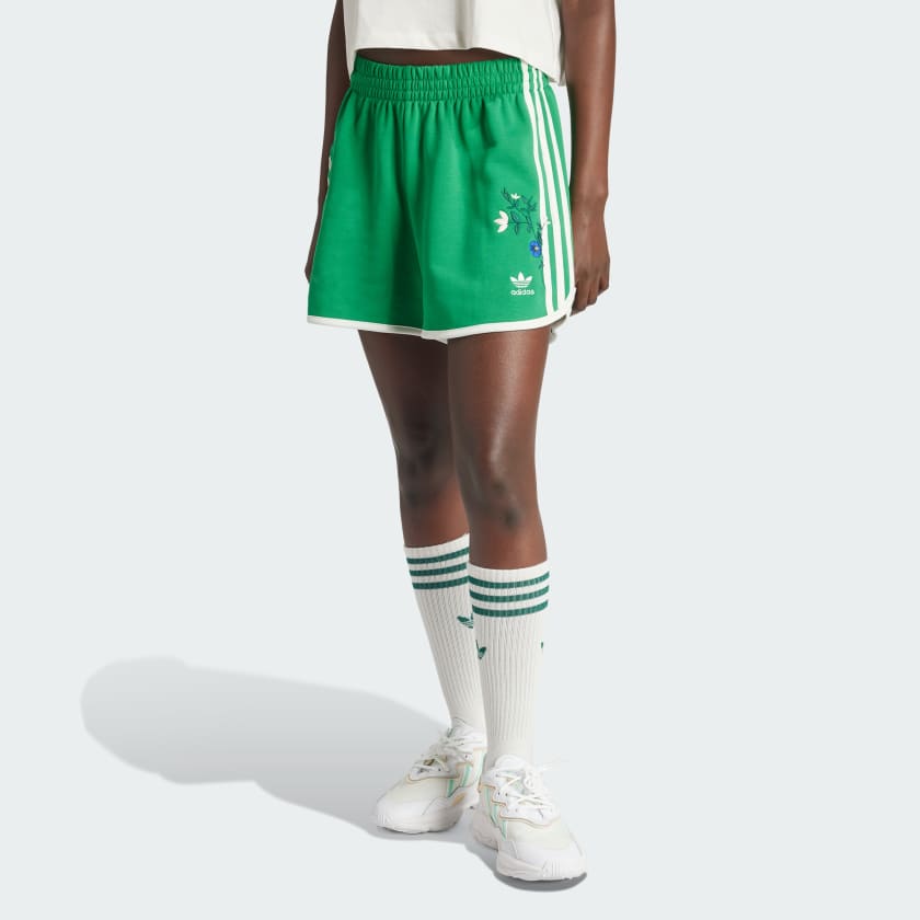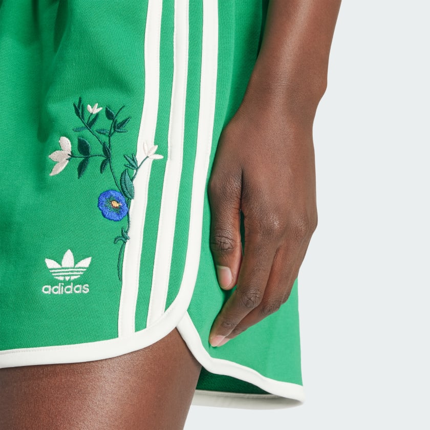 Floral accents bloom on soft cotton French terry in these adidas shorts, creating a laid-back vibe. A loose silhouette keeps the warm-weather style airy and the high rise ensures endless comfort. Overlapping side hems add a sporty touch. By choosing recycled, we are able to reuse materials that have already been created, which helps to reduce waste. Renewable materials choices will help us to remove our reliance on finite resources. Our products made with a blend of recycled and renewable materials feature at least 70% total of these materials.