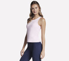 Dress the sporty part with all-in-one convenience and comfort wearing Skechers GO WALK Wear™ Shelf Bra Tank. This casual tank top features a built-in shelf bra with removable Air-Cooled Memory Foam® cups and moisture-wicking GO FLEX® fabric.