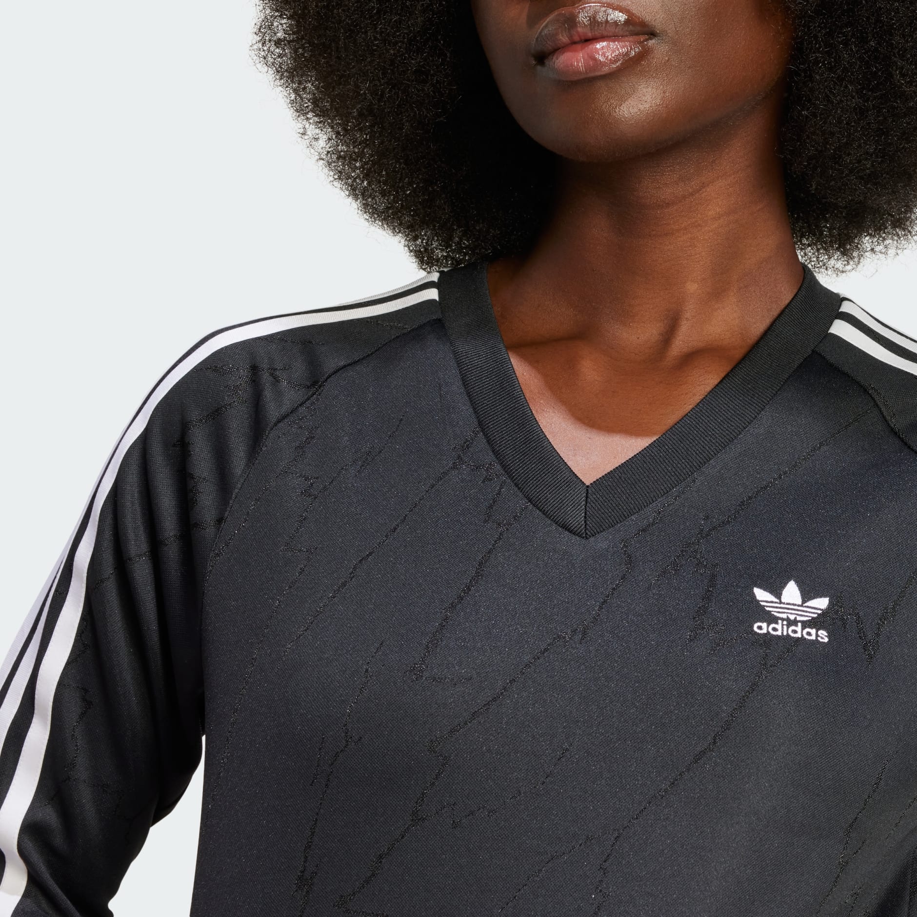Sport sublimated in an everyday staple, this adidas jersey brings football-inspired design to your daily wardrobe. A nod to our archives, it has a lightning-pattern jacquard woven directly into the fabric for a subtle yet striking look. The slim fit hugs the body, while the cropped length adds a stylish twist. Effortless yet fashion-forward, the jersey is made to be paired with everything from joggers to jeans. This product is made with 100% recycled materials. By reusing materials that have already been created, we help to reduce waste and our reliance on finite resources and reduce the footprint of the products we make.