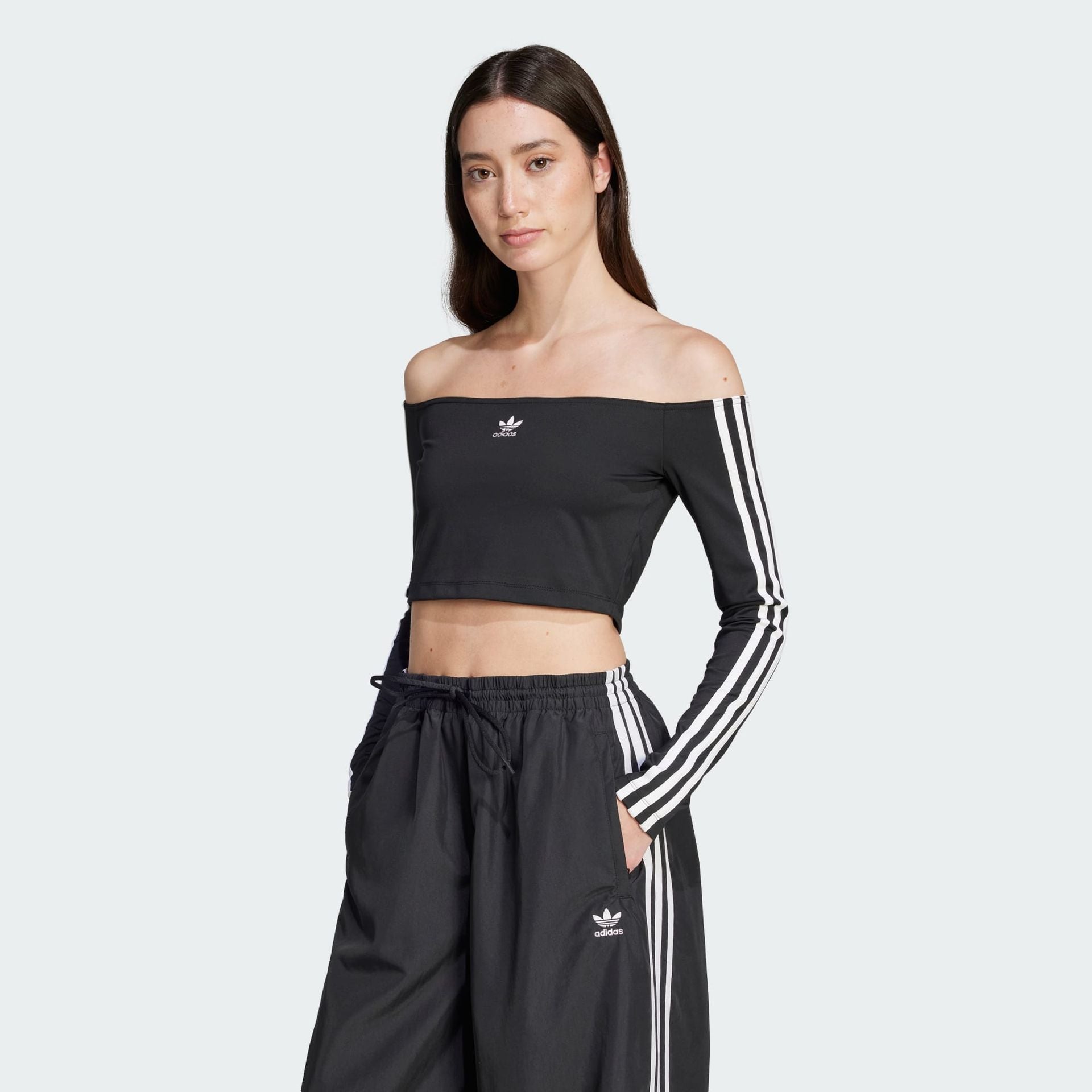 ADICOLOR OFF SHOULDER LONG SLEEVE LONG-SLEEVE TOP - Black