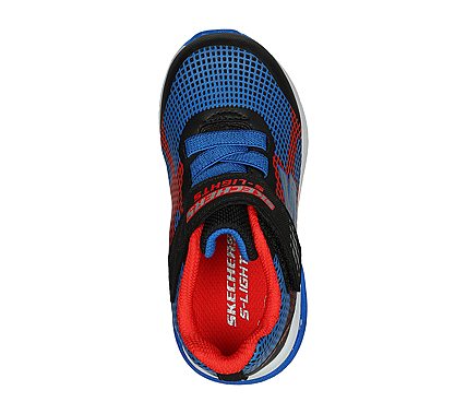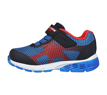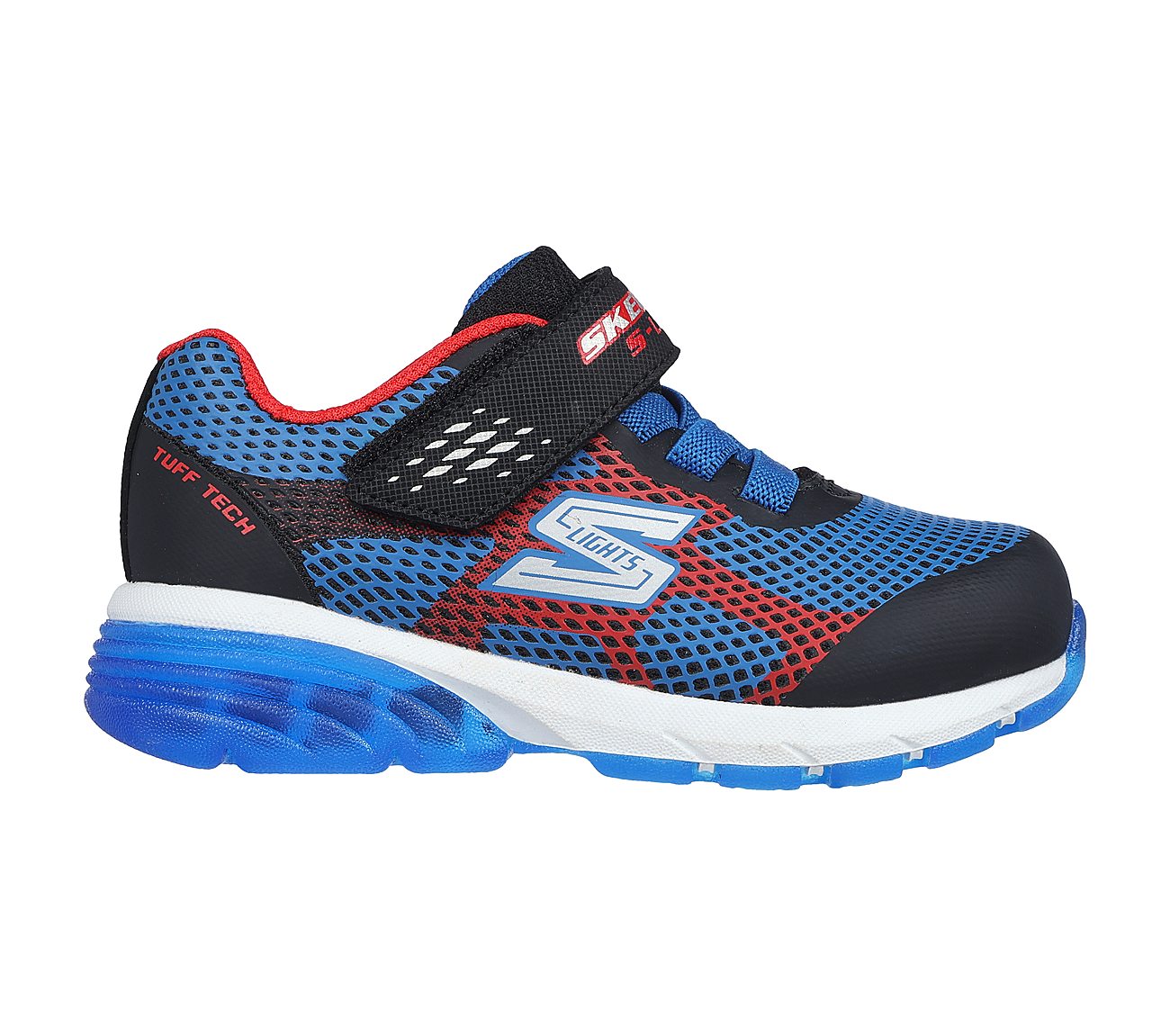 Get a cool kick of comfort wearing Skechers S-Lights®: Rapid Charge. This light-up design features a water-repellent synthetic upper with flame detail, a stretch-lace front and an instep strap closure.
