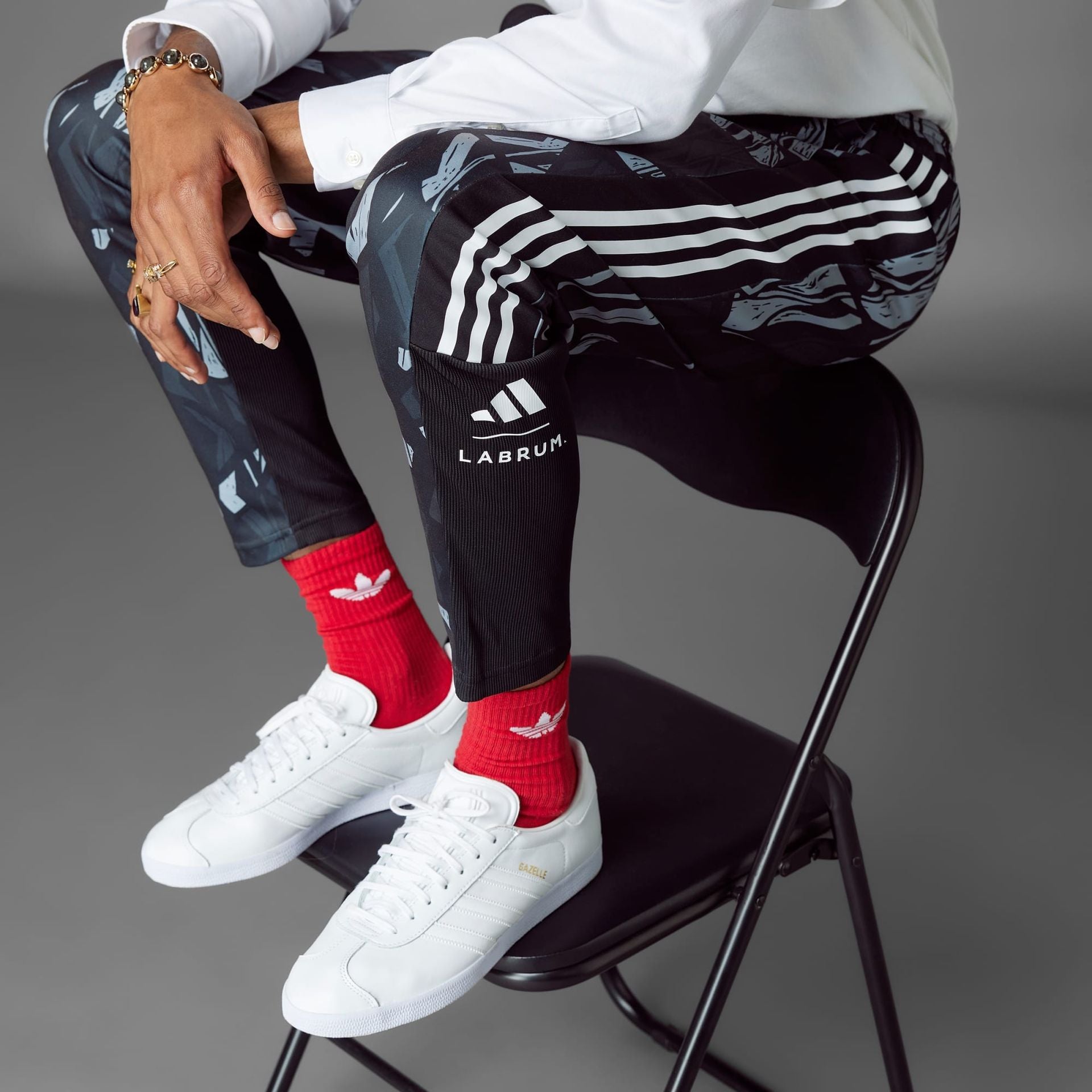 Made in collaboration with Labrum London, these Arsenal track pants catch the eye. When the weekend beckons, slip into the comfort of these adidas football track pants. Whether there's a game on the horizon or not, they'll keep you moving comfortably with doubleknit fabric and a tapered fit. Part of the Arsenal x Labrum London collection, they share their eye-catching graphic with the North London club's stylish away kit.