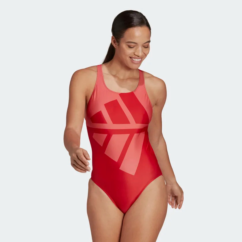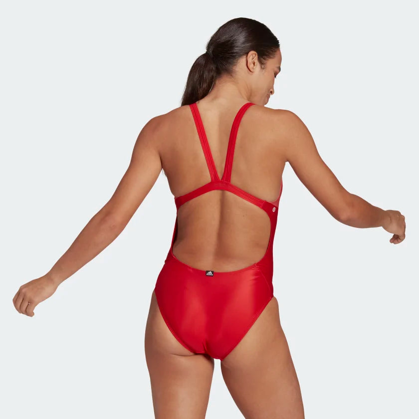Why blend in when you can stand out? Rock a bold look in this sporty swimsuit. A double adidas Badge of Sport mimics the effect of a reflection in water. It's made of soft, lightweight fabric and has inner bust support to give you confidence. This garment is made of chlorine-resistant fabric that features ECONYL® regenerated yarn