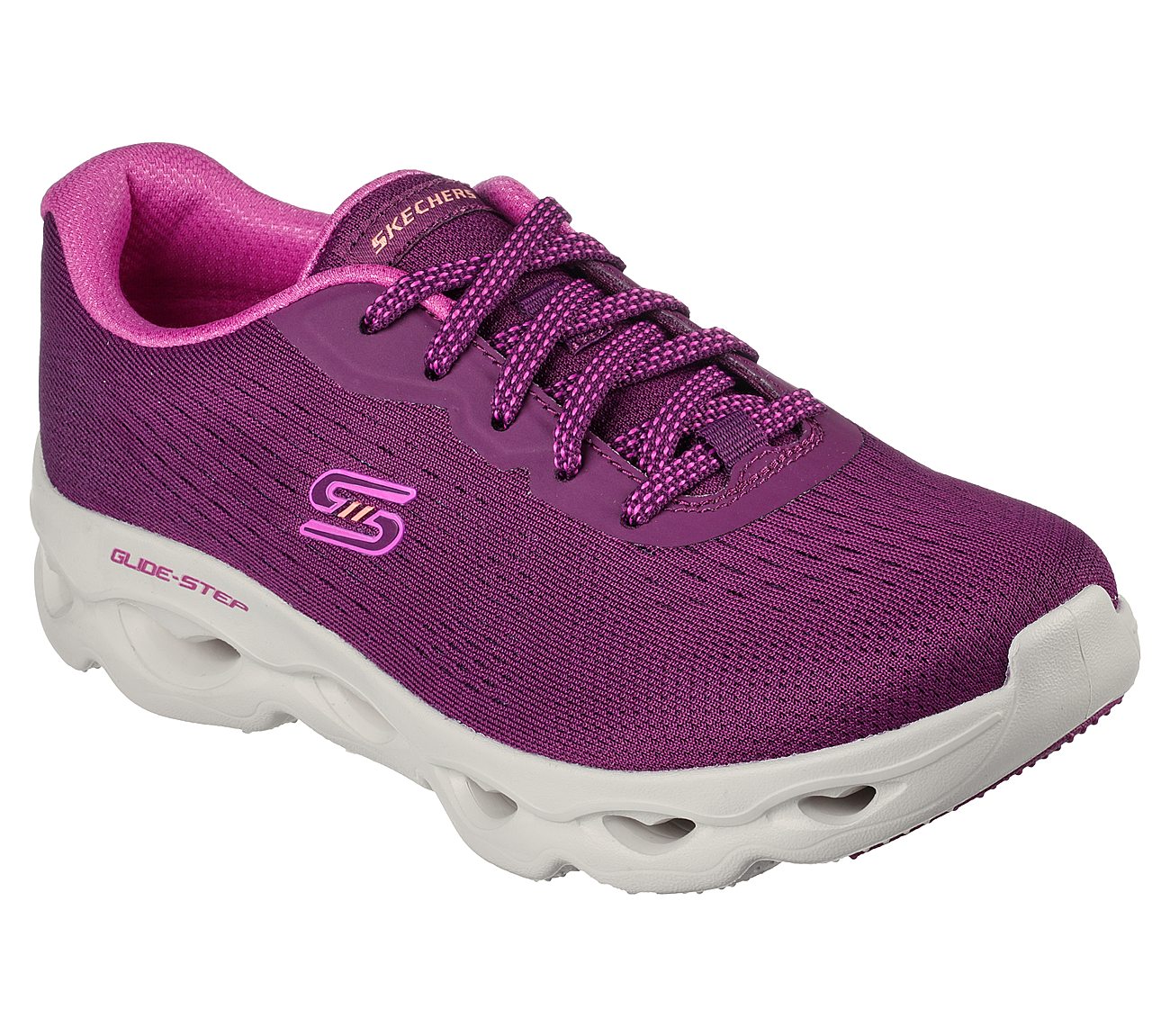 Enticing comfort and sweet style combine in Skechers Glide Step® Allure - Love Spree. This sporty design features a lace-up engineered mesh upper with a Skechers Air-Cooled Memory Foam® comfort insole and Glide-Step® geometric cushioned midsole.