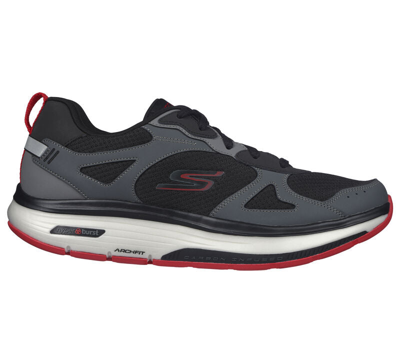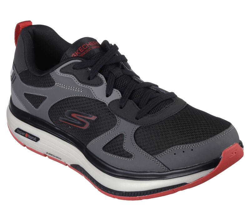 WALKING IS A SPORT™ Enhance your steps with advanced comfort wearing Skechers GO WALK Workout Walker™. This lace-up features a carbon infused design in a leather, mesh and synthetic upper with a removable Skechers Arch Fit® insole, Hyper Burst® cushioning and a Goodyear® Performance Outsole.