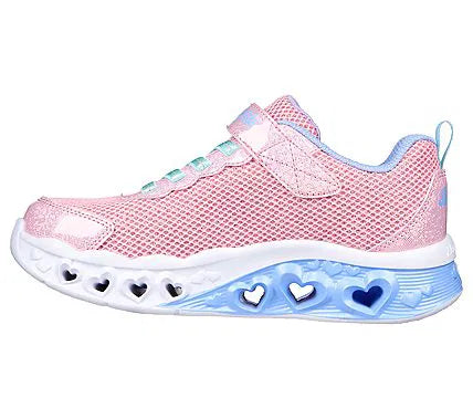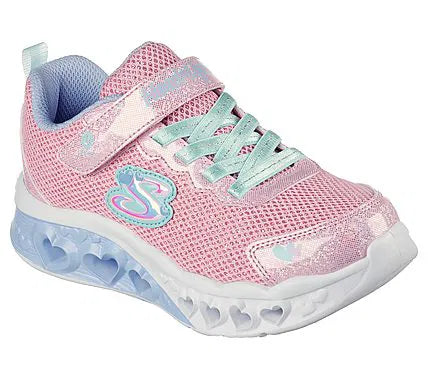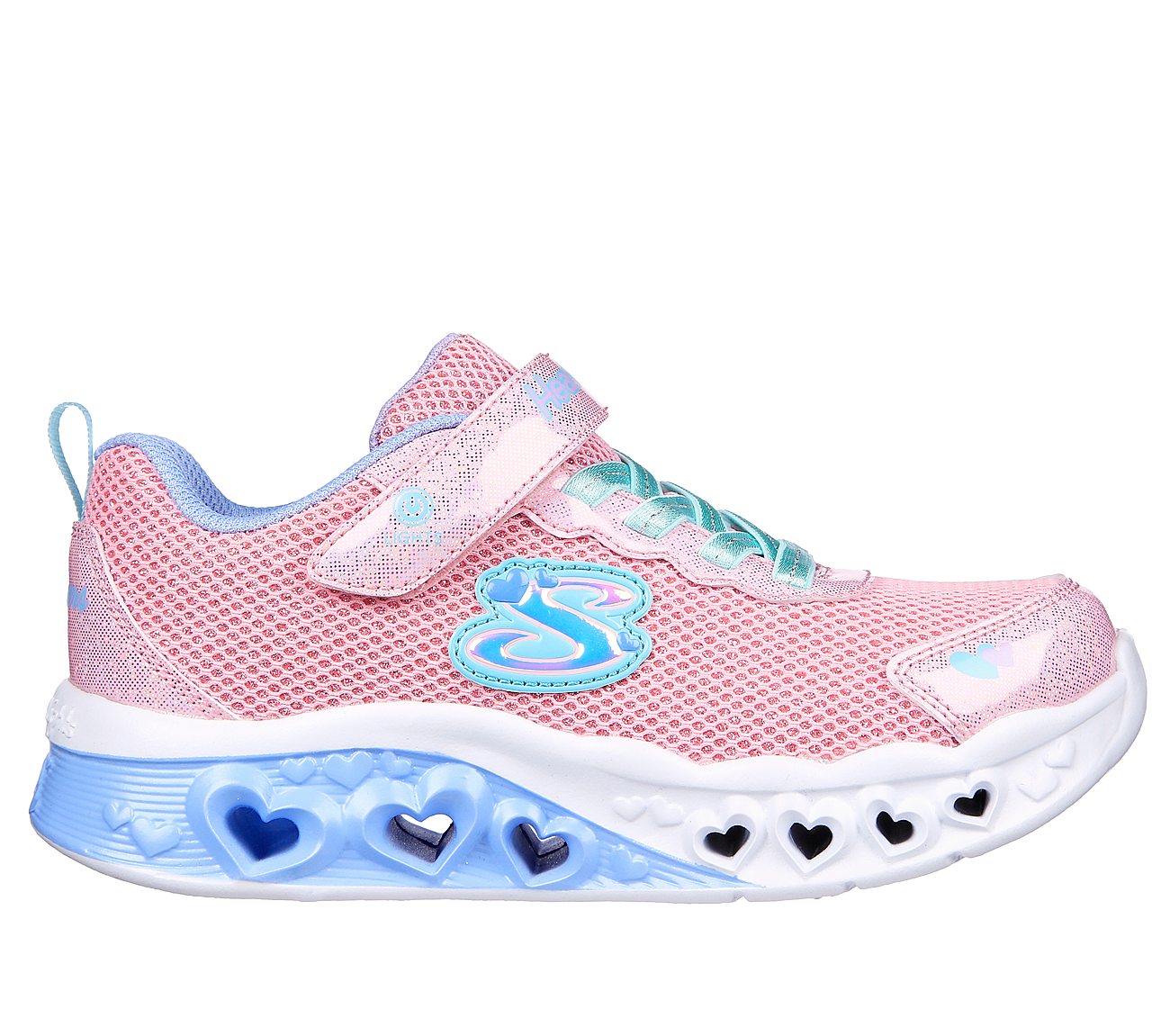 Adorable lights and pretty colors brighten up the day in the Skechers S-Lights® Flutter Heart Lights - Bring Sparkle. This casual, lightweight design features a sparkly mesh synthetic upper and a fun 3D heart-shaped light-up midsole.