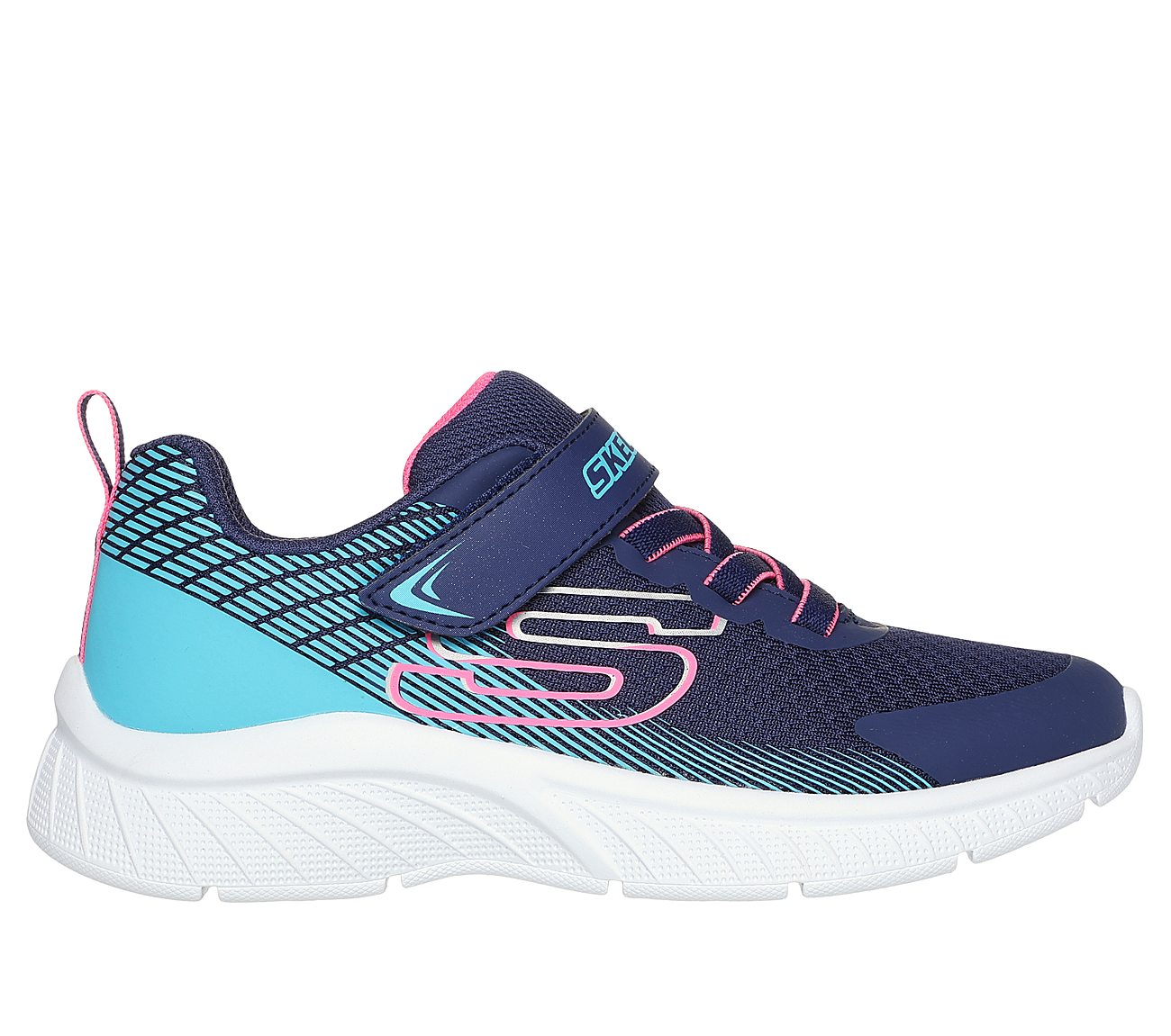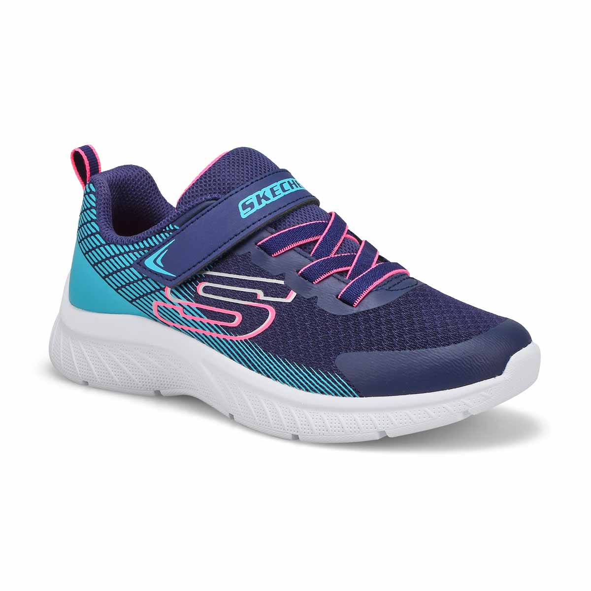 Lightening fast looks meets sporty style in the Microspec Plus navy/ black sneaker from Skechers. This lightweight design features a mesh and synthetic upper with 3D print details, stretch laces, and an adjustable instep strap. Shock-absorbing supportive midsole with a cushioned comfort insole for added comfort. Designed with a flexible traction outsole.