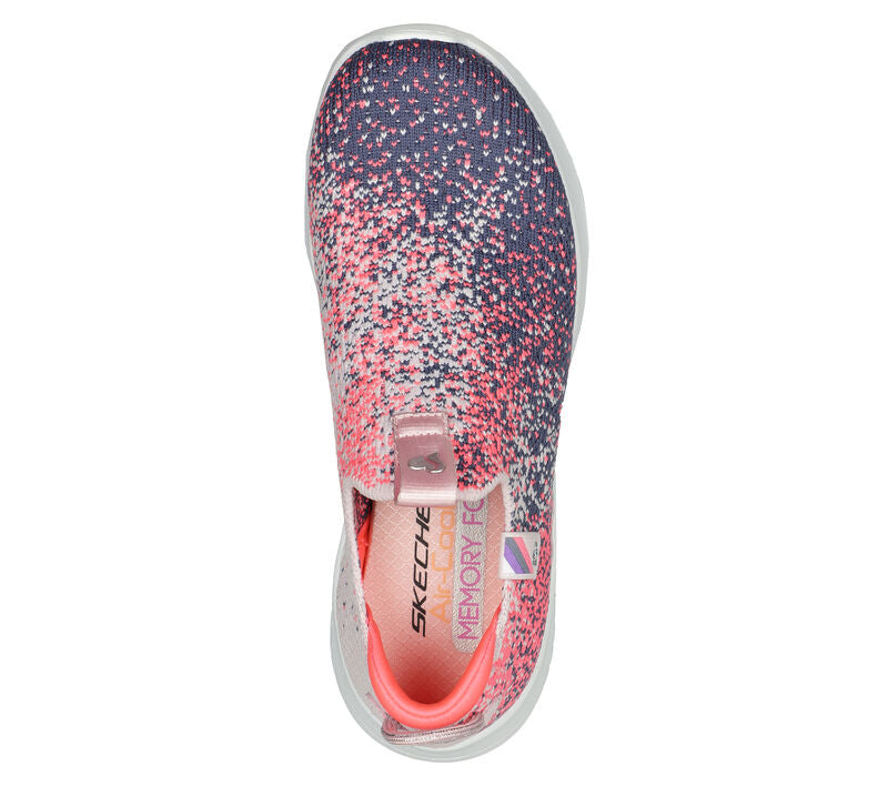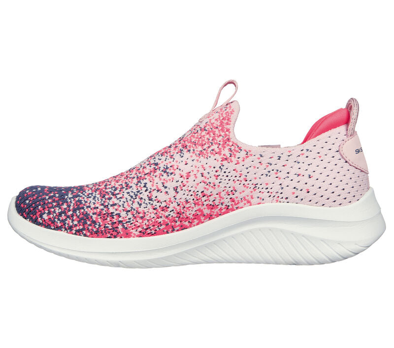 Move with colorful style and comfort in Skechers Ultra Flex 3.0 - Splendid Spots. This Stretch Fit® design features an ombre speckled Skech-Knit upper with a cushioned Skechers Air-Cooled Memory Foam® insole.