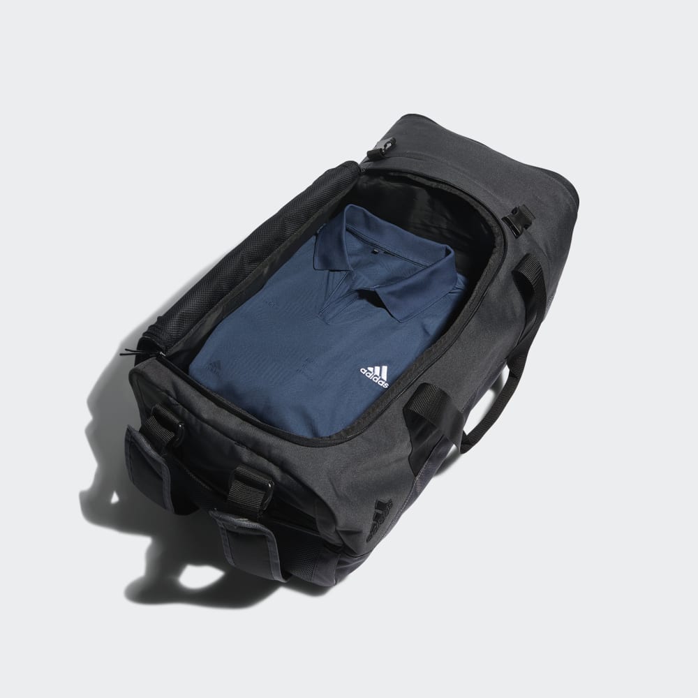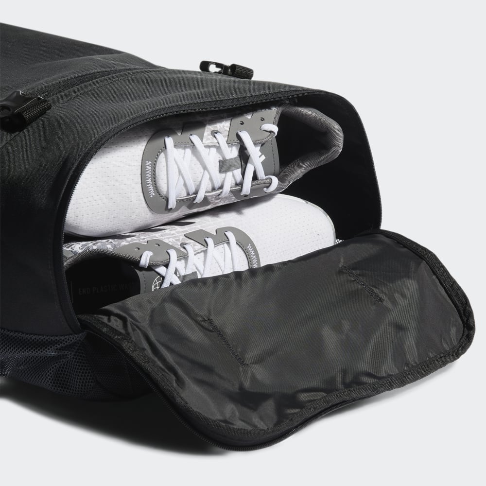 Keep your golf gear in one place. This adidas duffel bag is roomy enough for your pants, gloves and even some spare balls for the golf course. Put your shoes in the dedicated vented pocket when youre done playing. Adjustable shoulder straps let you carry it like a backpack, or you can remove them altogether and use the padded handle for a more conventional approach.