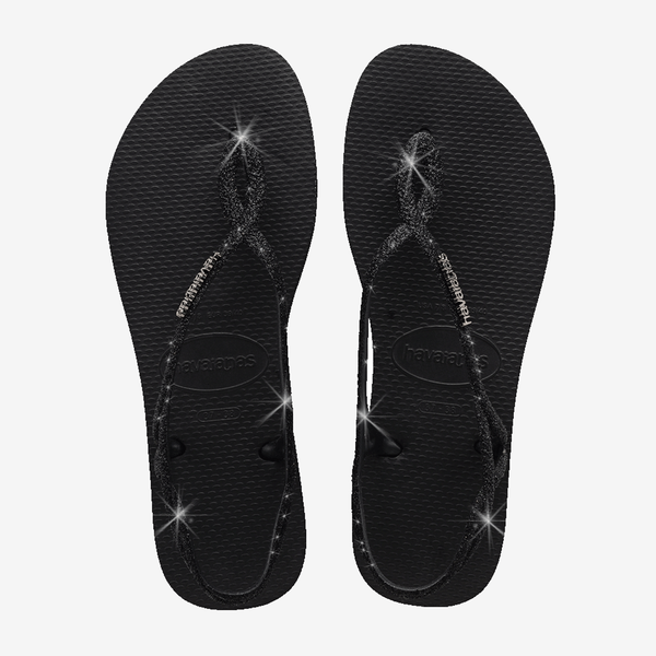 Havaianas Luna Sparkle sandals are super charming sandals. The glitter covered braided straps go around the heels and meet in the front in a gorgeous drop shape. To shine in style all the way.
