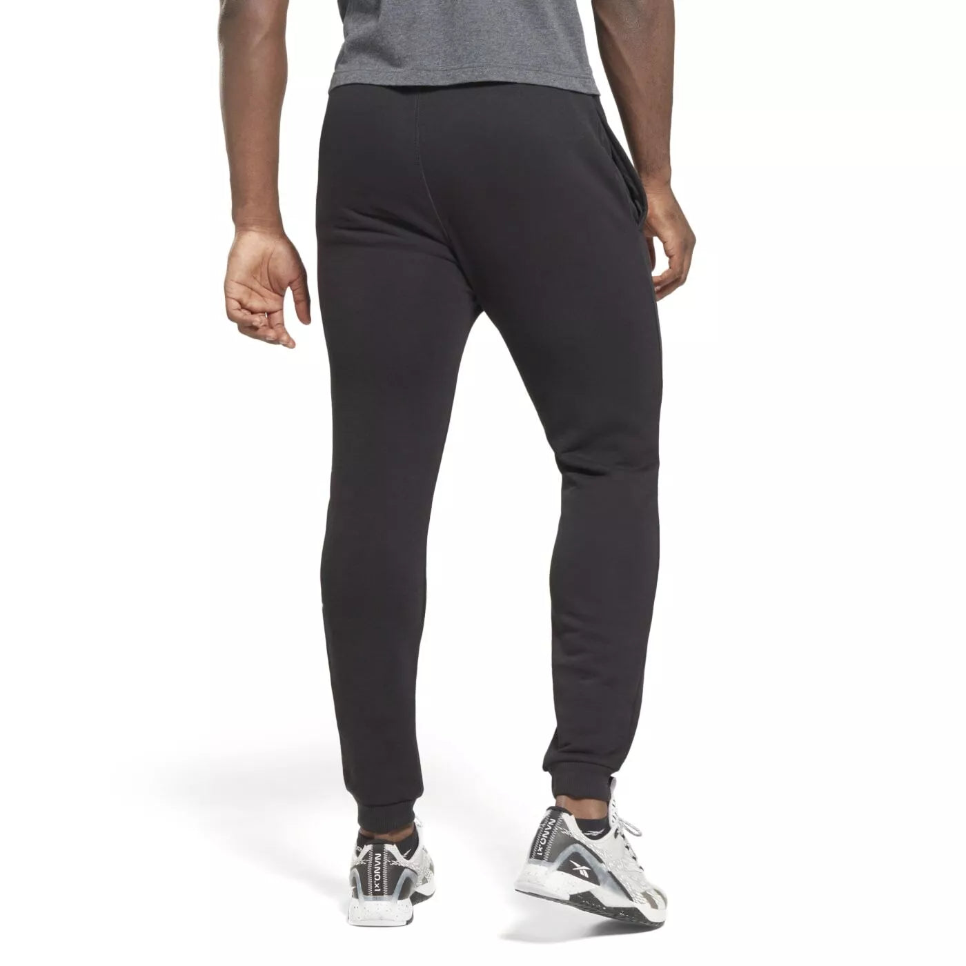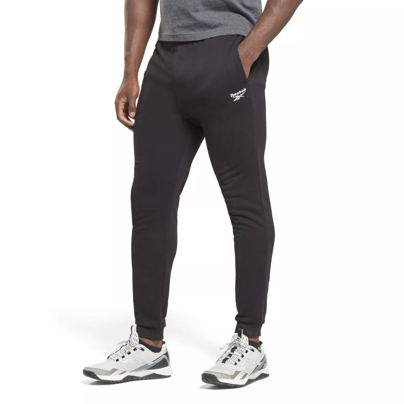 Slip into these men's track pants from Reebok and enjoy sporty style every day. Terry cloth offers comfort from morning to night and side pockets offer space for all your essentials. The tapered legs give them a modern cut. Our cotton products are made from 100% sustainably grown cotton and contain at least 50% Better Cotton.