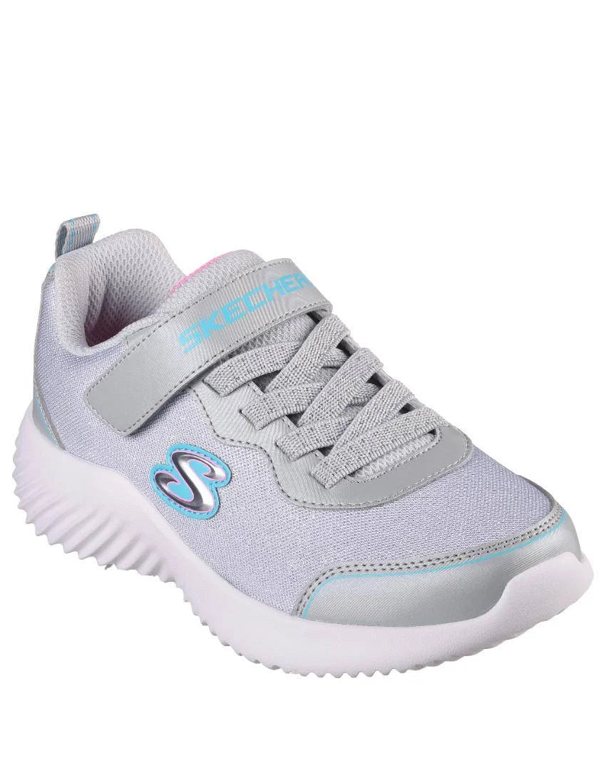 Sporty style and feet-loving comfort combine in Skechers Bounder - Girly Groove. This lightweight stretch-laced design features a sparkle mesh and synthetic upper with a cushioned insole.