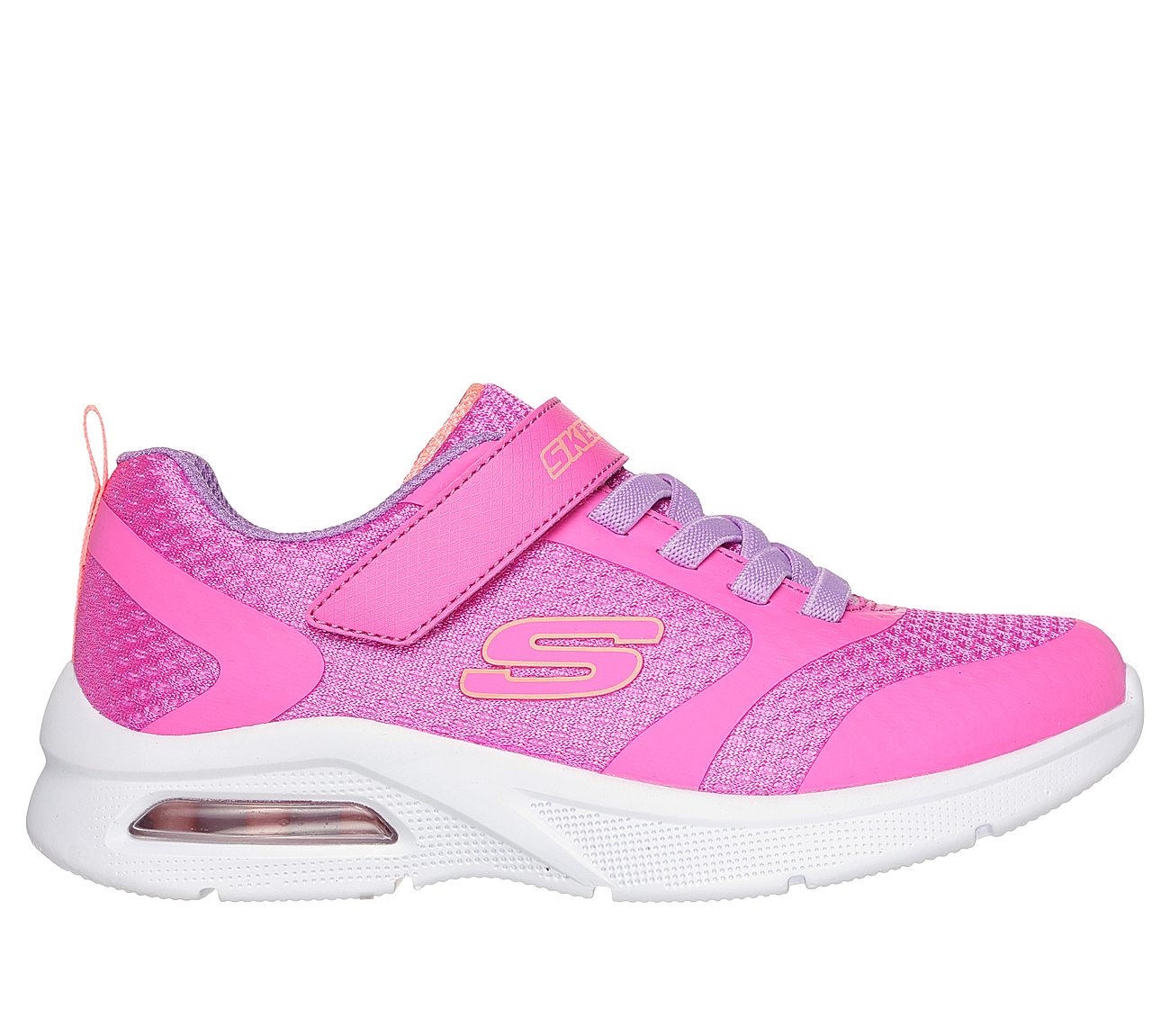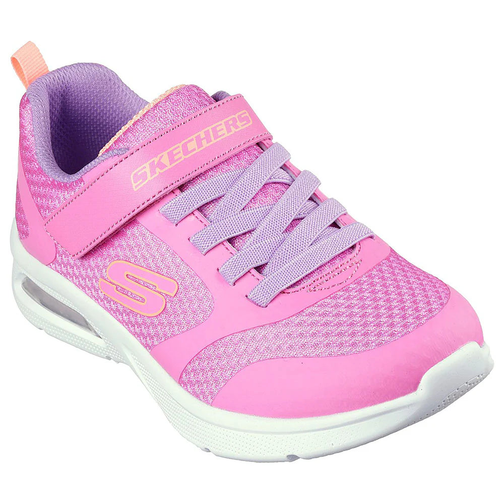 Add some extra comfy cushioning to a sporty style with Skechers Microspec Max - Racer Gal. This pull-on features a mesh upper with stretch laces, instep strap and a visible Skech-Air® airbag midsole.