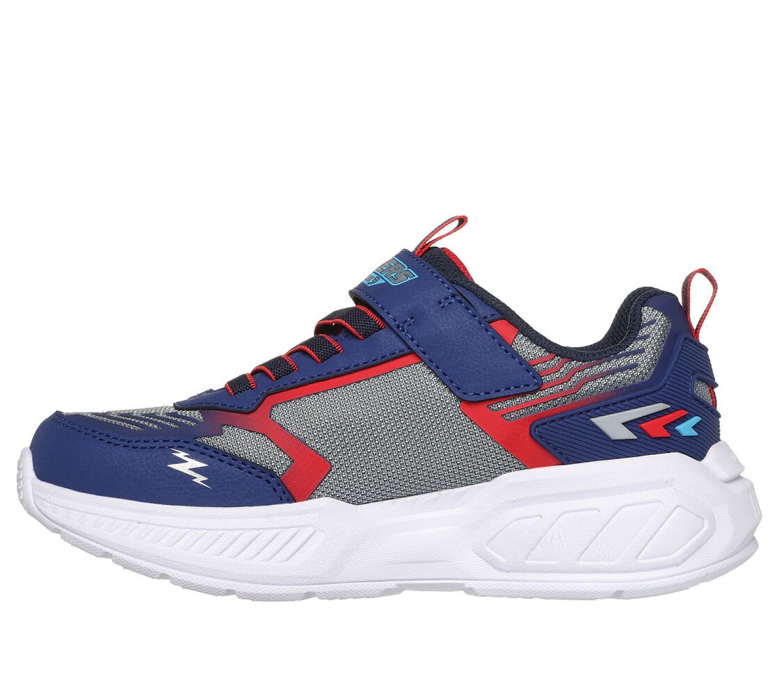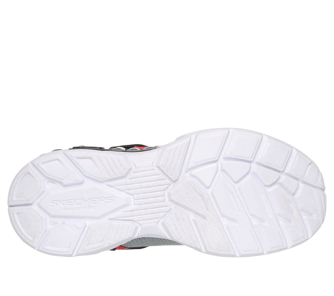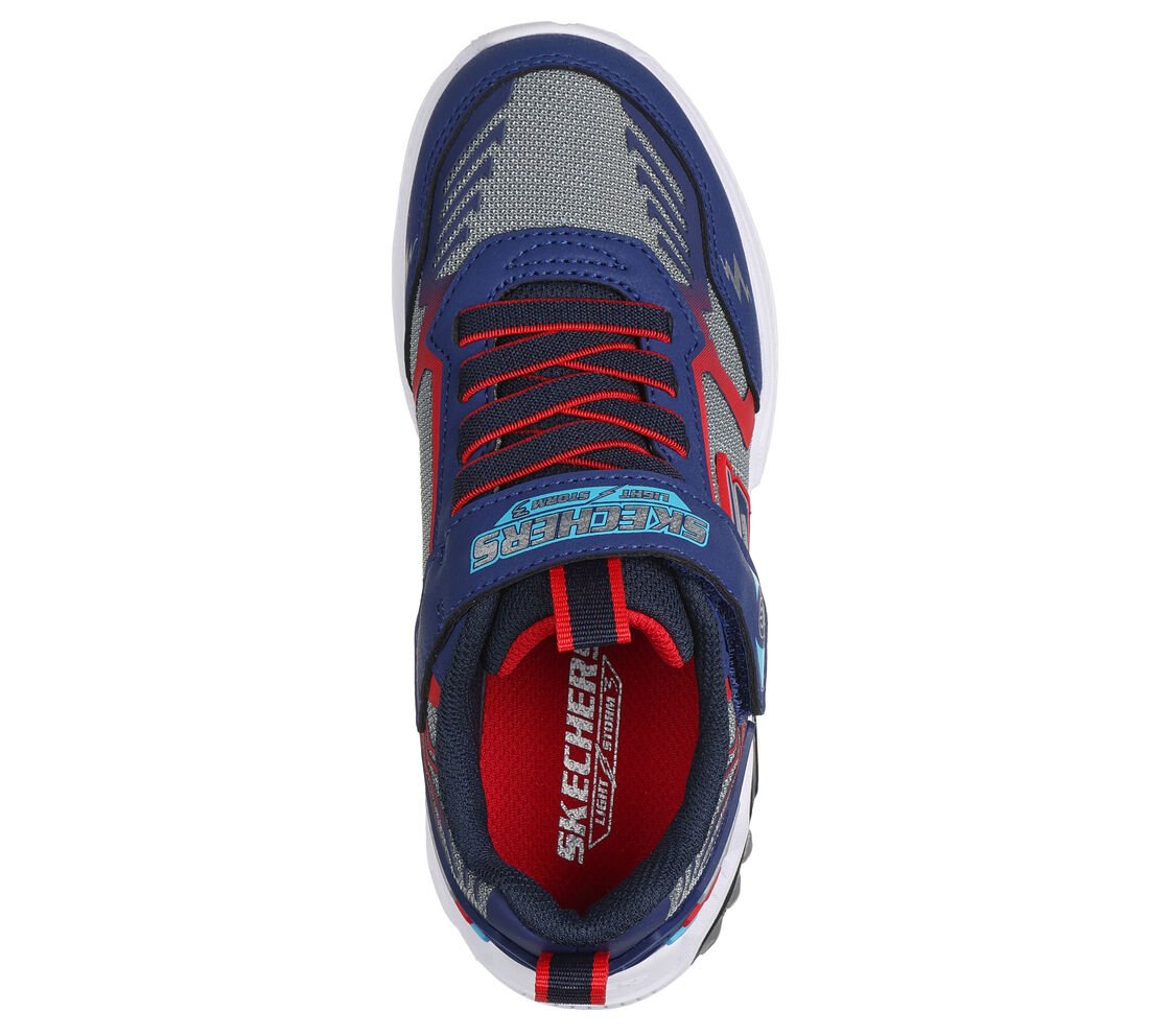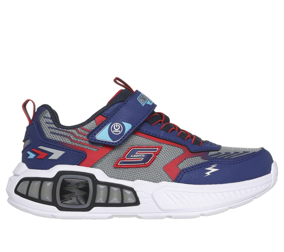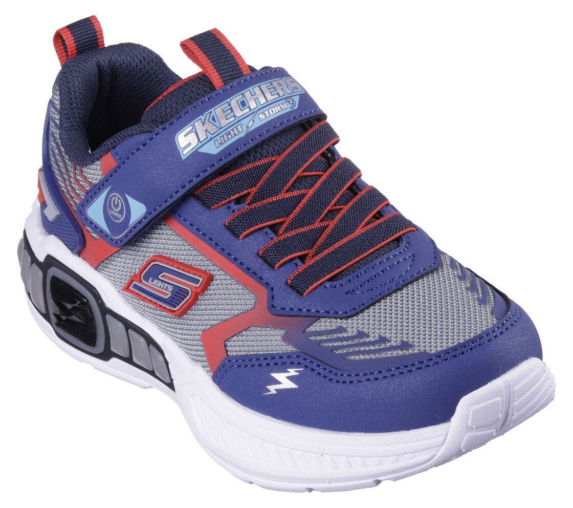 Step with a bolt of comfort and sporty style in Skechers S-Lights®: Light Storm 3.0. This thematic sneaker features a mesh and synthetic upper with a multicolored light-up tech piece midsole, stretch laces, and adjustable instep strap.