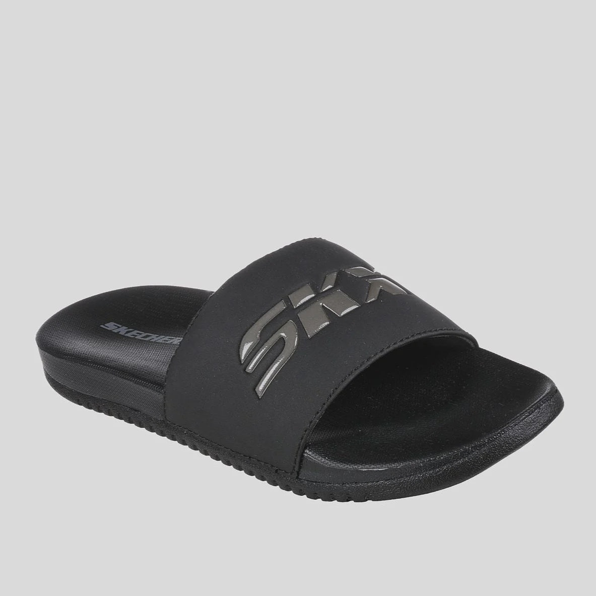 Enjoy warm-weather days in cool comfort with Skechers Gambix III. This lightweight slide sandal features a synthetic upper with a large high-gloss SKX® logo - all on a contoured cushion footbed.