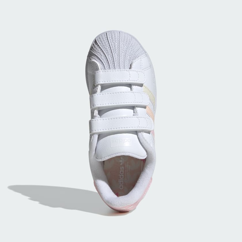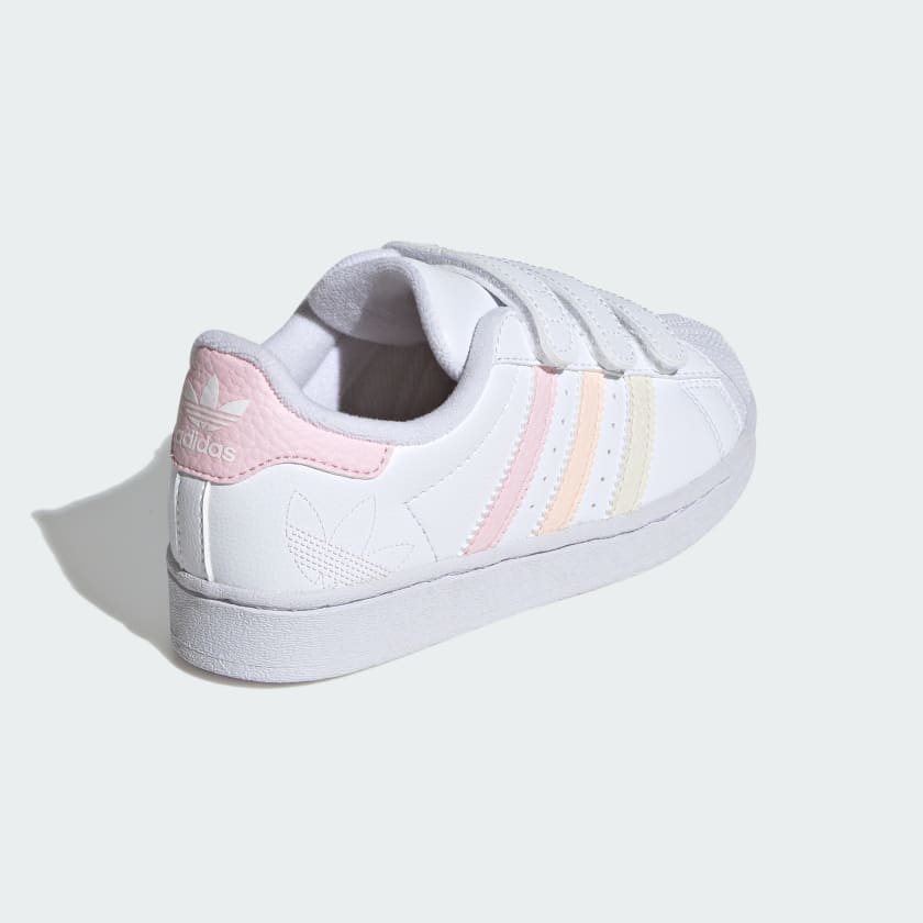 The adidas Superstar shoes are arguably the most iconic in the adidas catalogue. One glimpse of the rubber shell toe and you know you're looking at a legend. In this updated version for kids, the well-known design opts for ease with hook-and-loop straps. Serrated 3-Stripes and the Superstar box logo stay true to tradition while gradient colour brings a playful touch. Let kids slip them on and make their own history with every step.
