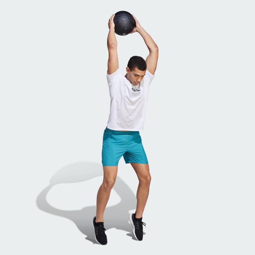 This pair of adidas training shorts is the one youll want to throw in your gym bag on the day you plan to hit your PR. Lightweight woven fabric and AEROREADY keep you dry and comfortable as you dig deep for that extra squat rep. Theyre cut for unrestricted movement, so theres nothing holding you back.