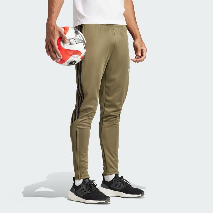 Essential training gear from adidas. Before you hit the pitch for that chilly winter session, layer up in these Tiro 23 Club football pants. Their slim, streamlined fit and moisture-absorbing AEROREADY will keep you flying through sprints and rondos. Once you reach perfect temperature, ankle zips make pulling them off over your boots a breeze.