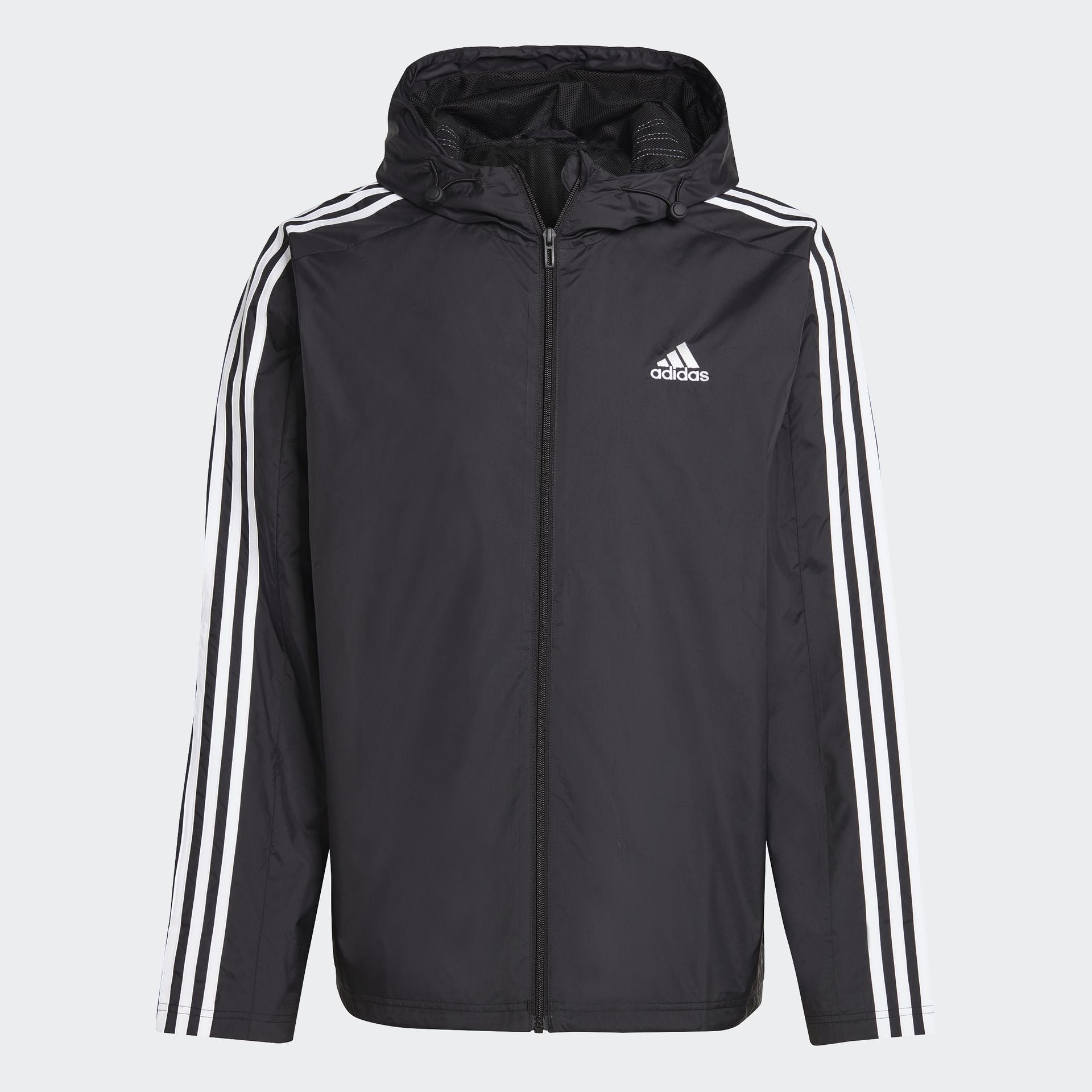 ESSENTIALS 3-STRIPES WOVEN WINDBREAKER - Black