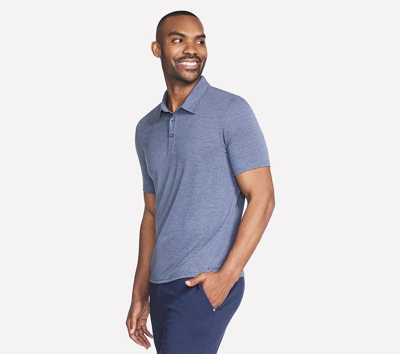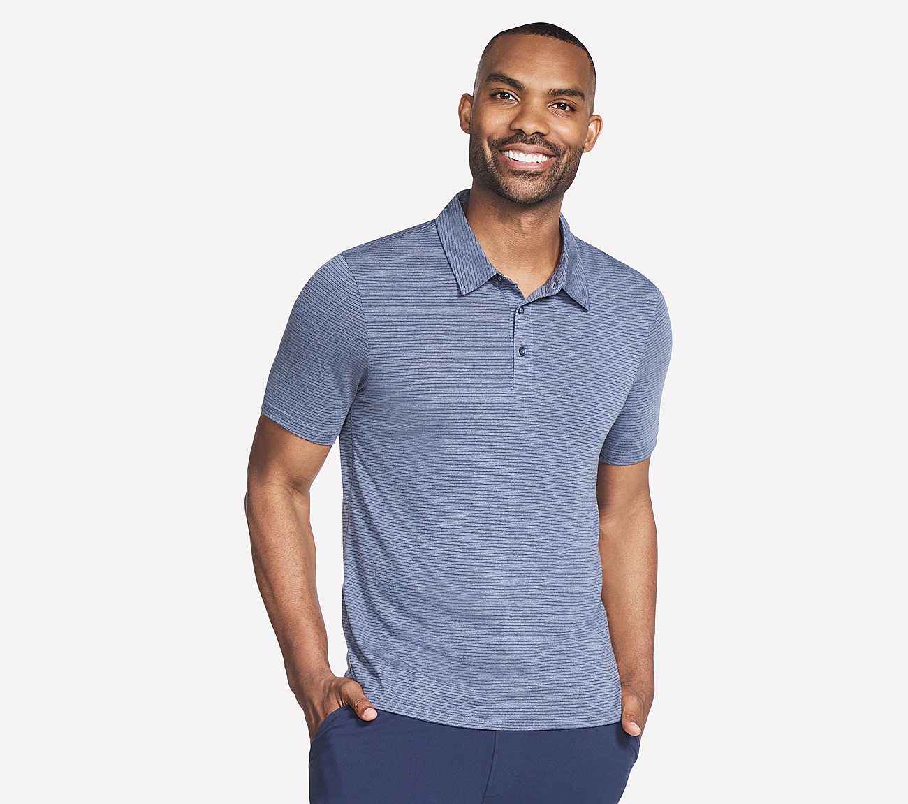 Coordinate your style with effortless comfort wearing Skechers GO DRI® Premier Stripe Polo. This breathable lightweight polo shirt features short sleeves, self-standing collar and a 3-button placket.