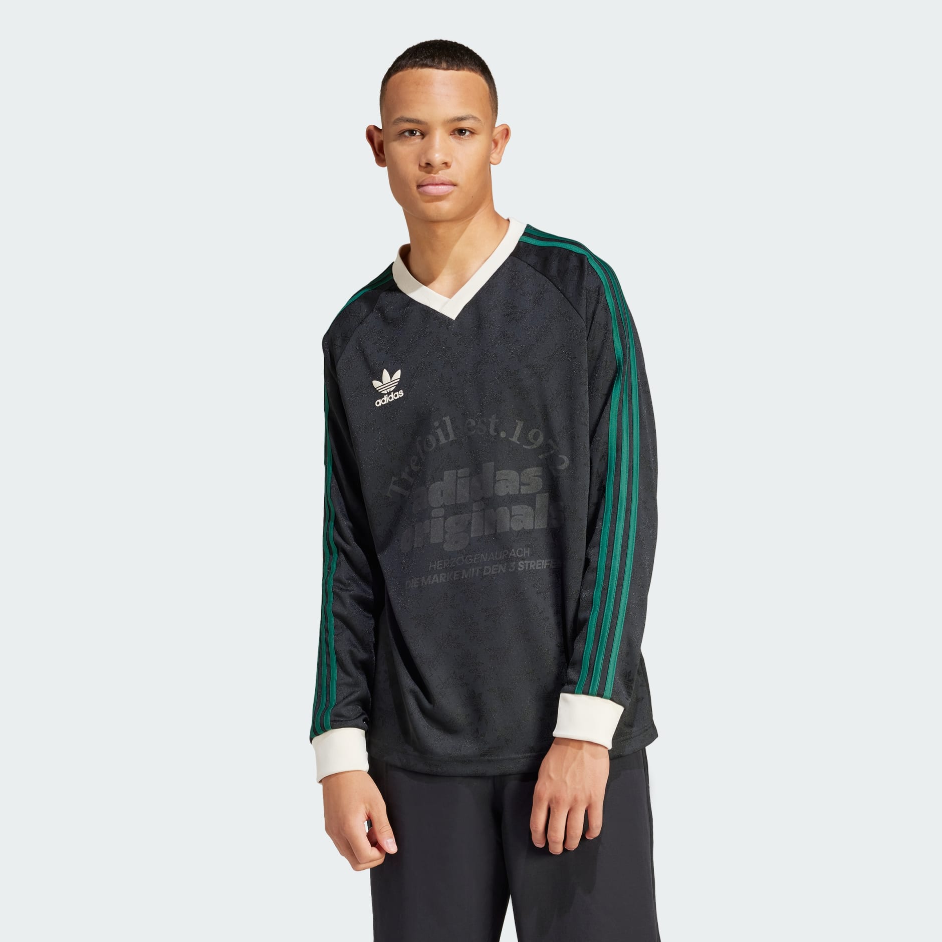 Stand out in a sea of ordinary. This adidas jersey pulls inspiration from the brand's rich sport heritage, reimagining an icon to disrupt the expected. With its allover monogram print and jacquard fabric, it knows how to make a statement. Ribbed cuffs on the long sleeves finish the look. This product is made with at least 70% recycled materials. By reusing materials that have already been created, we help to reduce waste and our reliance on finite resources and reduce the footprint of the products we make.
