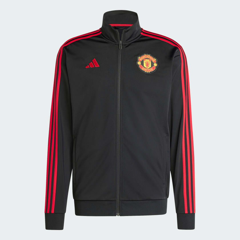 Show your devotion to the mighty Manchester United in this adidas soccer track top. Ribbed cuffs and smooth tricot fabric keep you comfortable whether you're watching matches at Old Trafford or following along from the couch. Classic club colors and an embroidered badge showcase the unrivaled heritage of your club.