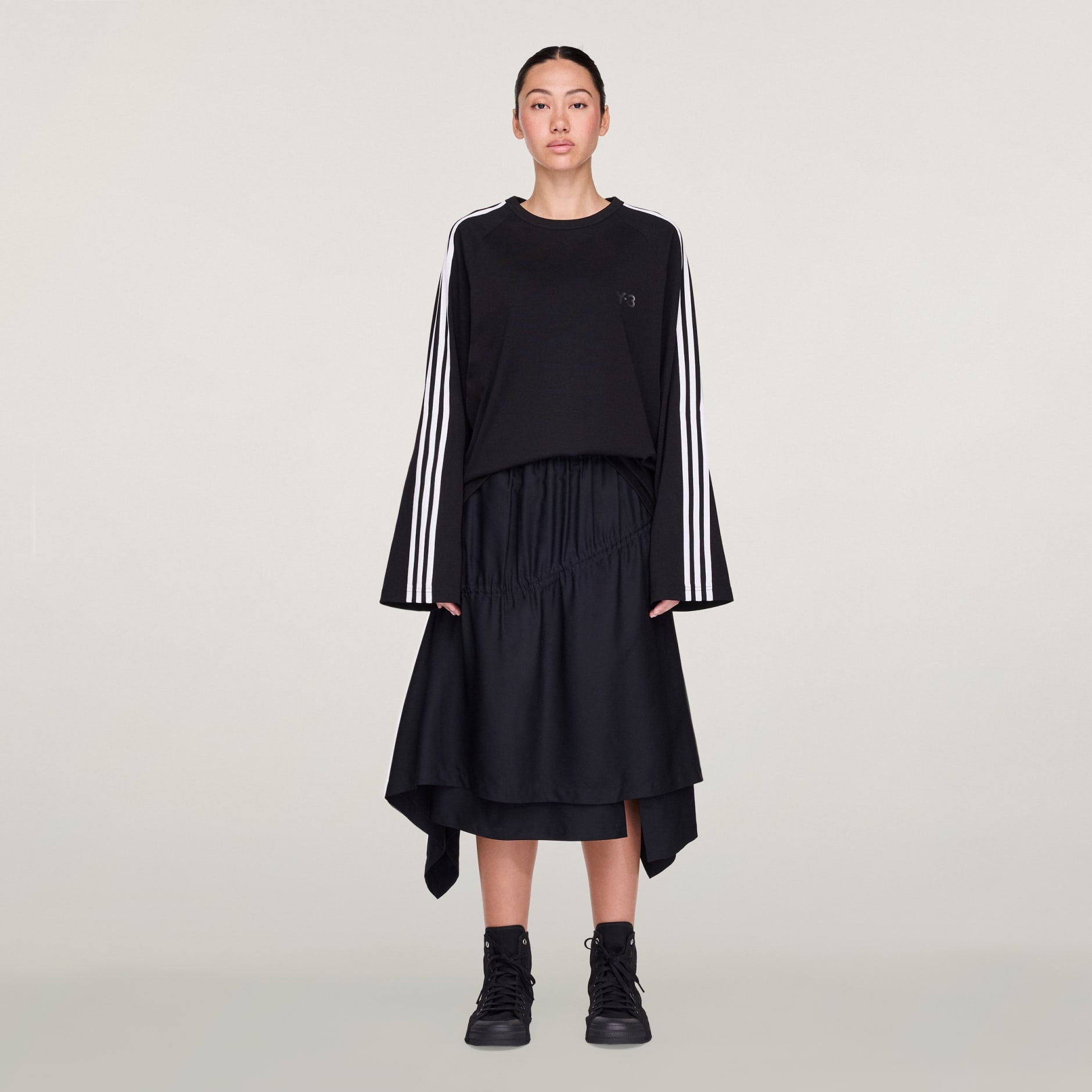 Y-3 LONG SLEEVE LONG-SLEEVE TOP 3-STRIPES - Black