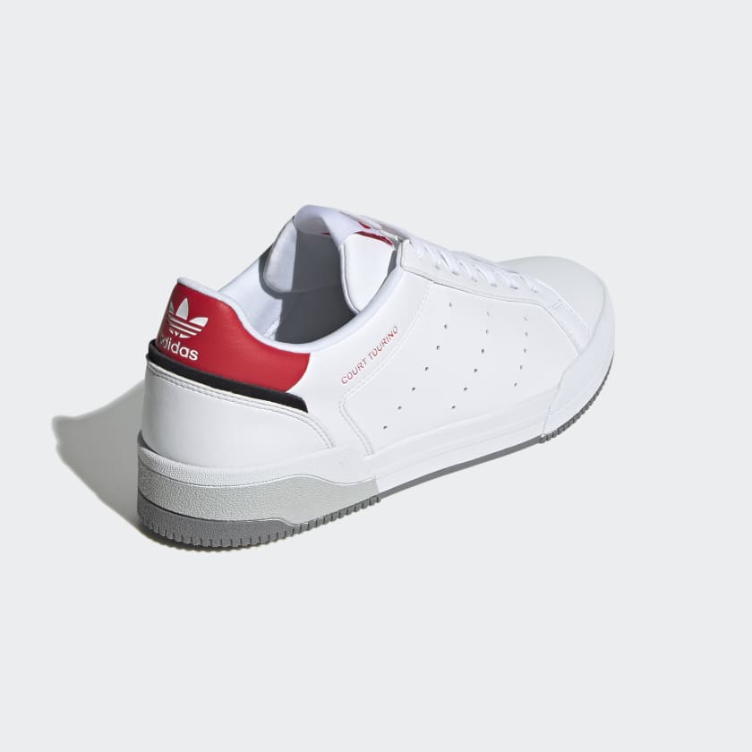 Low key and effortlessly simple. These adidas Court Tourino Shoes take their inspiration from our early-2000s archive. The classic heritage style is updated with a subtle pop of colour on the heel and perforated 3-Stripes for a modern look. Easy to style and comfortable to wear, they're trainers you'll reach for again and again.