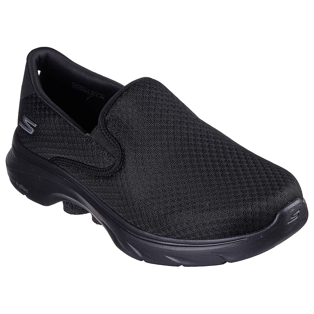 Walk in easy-wearing comfort with Skechers GO WALK 7™. This laceless walking design features a mesh upper with a Skechers Air-Cooled Goga Mat™ insole, lightweight ULTRA GO® cushioning, and high-rebound Hyper Pillar Technology™ for added support.Product Features