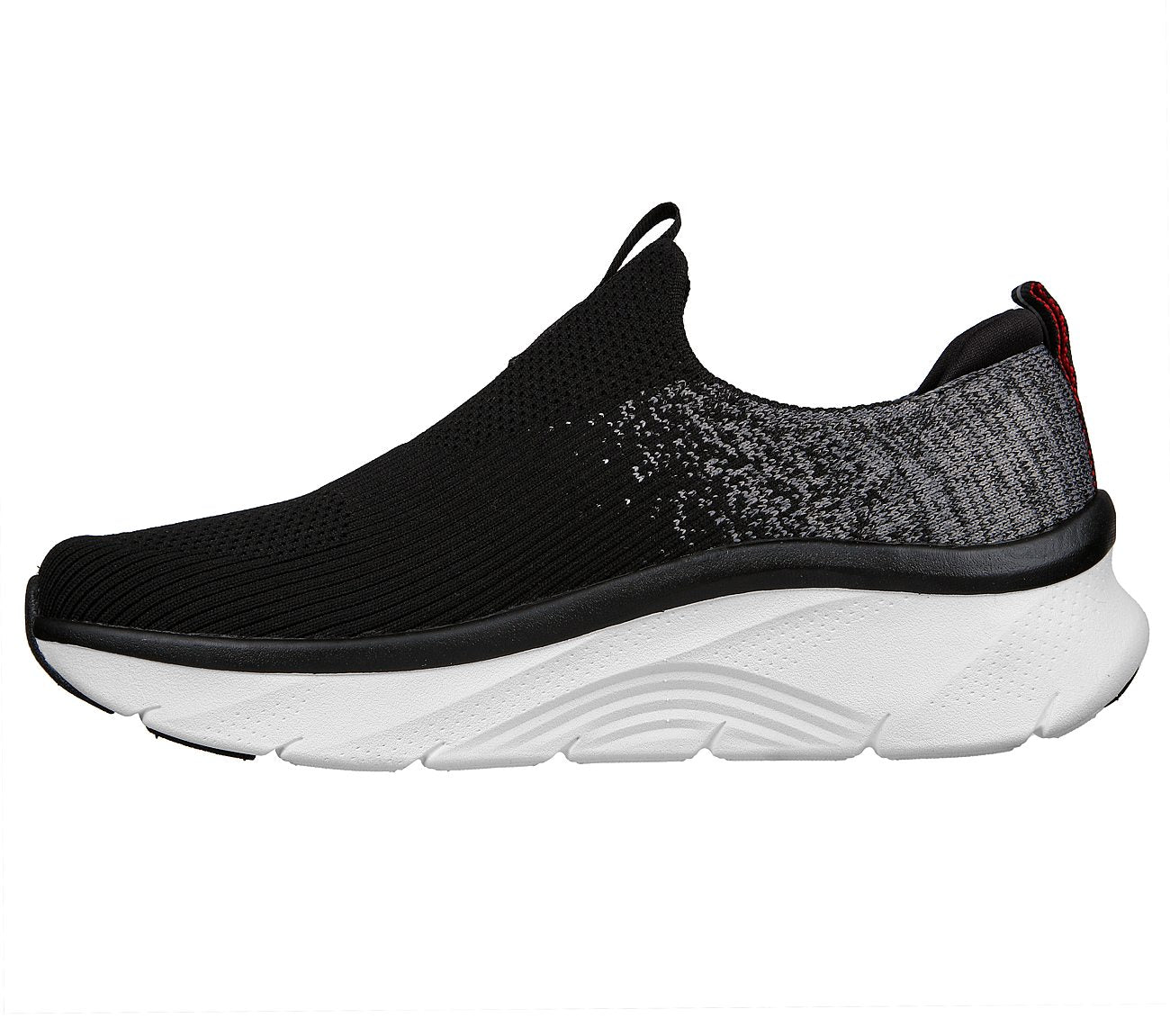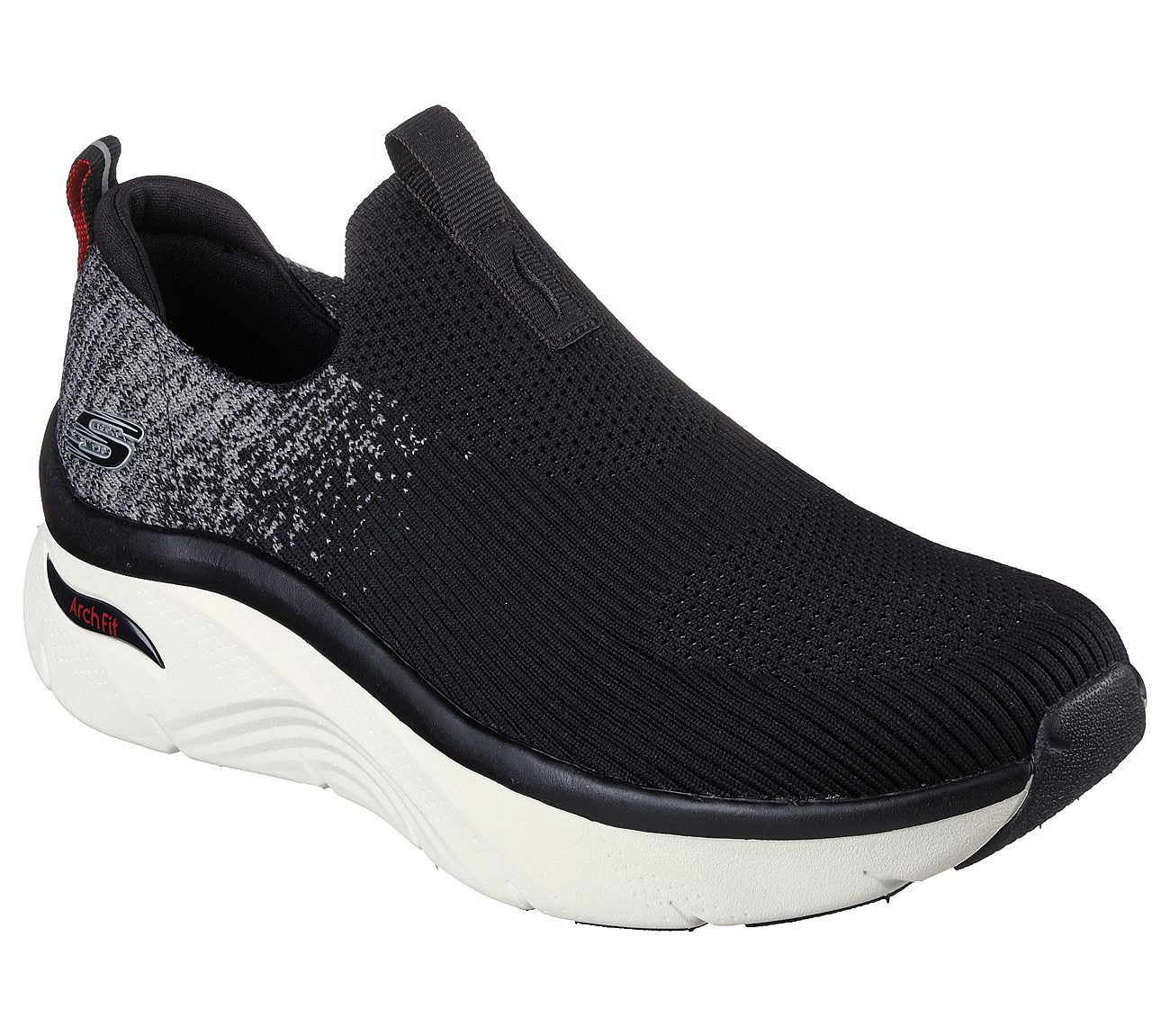 All-day comfort and support combine in Skechers Relaxed Fit®: Arch Fit D'Lux. This slip-on features a Stretch Fit® engineered knit upper with a removable Arch Fit® insole and well-cushioned midsole.
