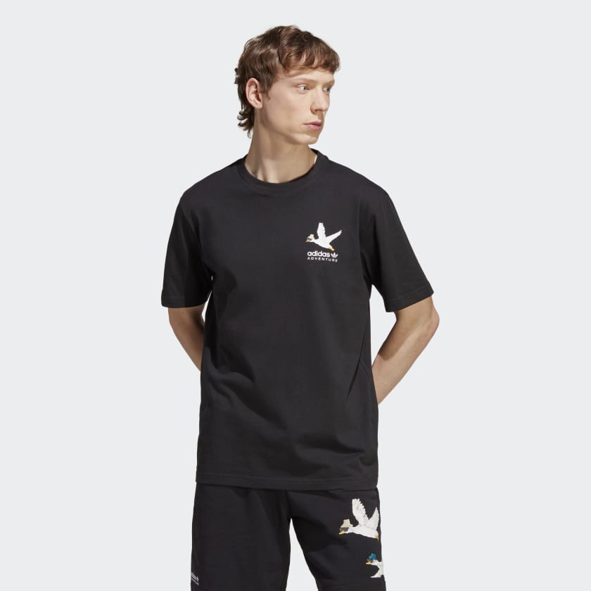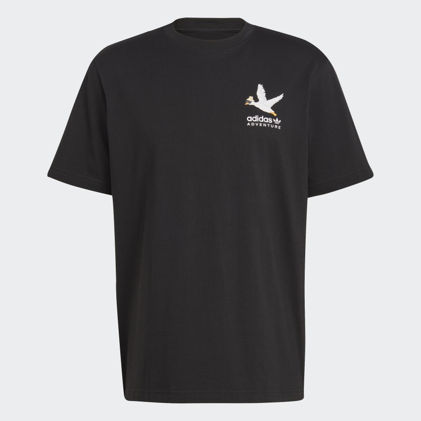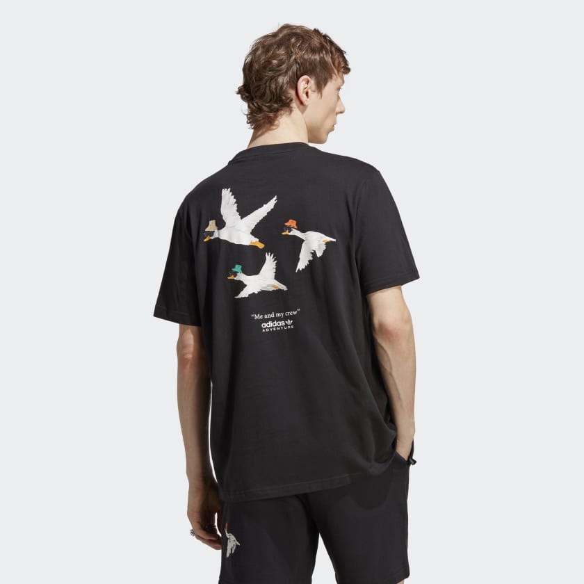 Disconnect from the grind and reconnect with your authentic self. This adidas Adventure t-shirt is cut from a soft cotton fabric for easygoing style. Putting a playful twist on an archive-inspired design, both the front and back feature humorous duck graphics that keep the vibe loose and relaxed.