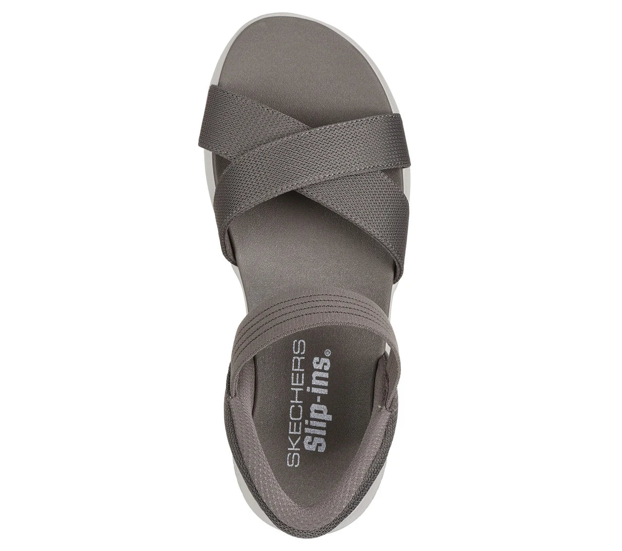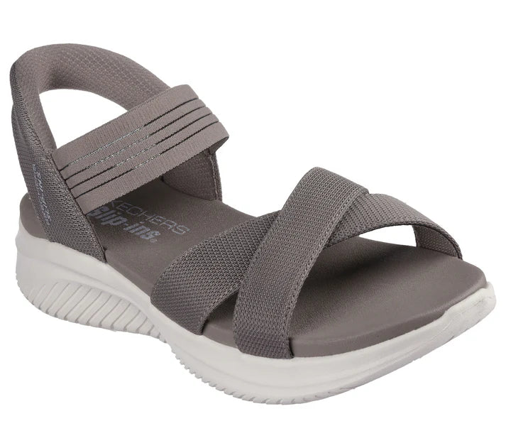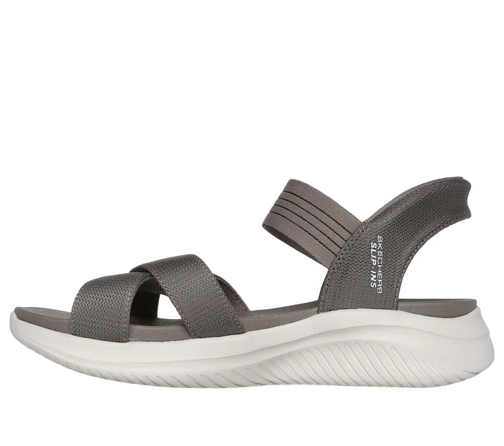 Enjoy sunny days in breezy comfort with Skechers Hands Free Slip-ins®: Ultra Flex 3.0 - Never Better. Designed with our Heel Pillow™, this slingback sandal features a stretch fabric strap upper with a cushioned Yoga Foam® footbed, and a Skechers Hands Free Slip-ins® back heel. Our Planet Matters®: Good for your feet. Good for the world.®