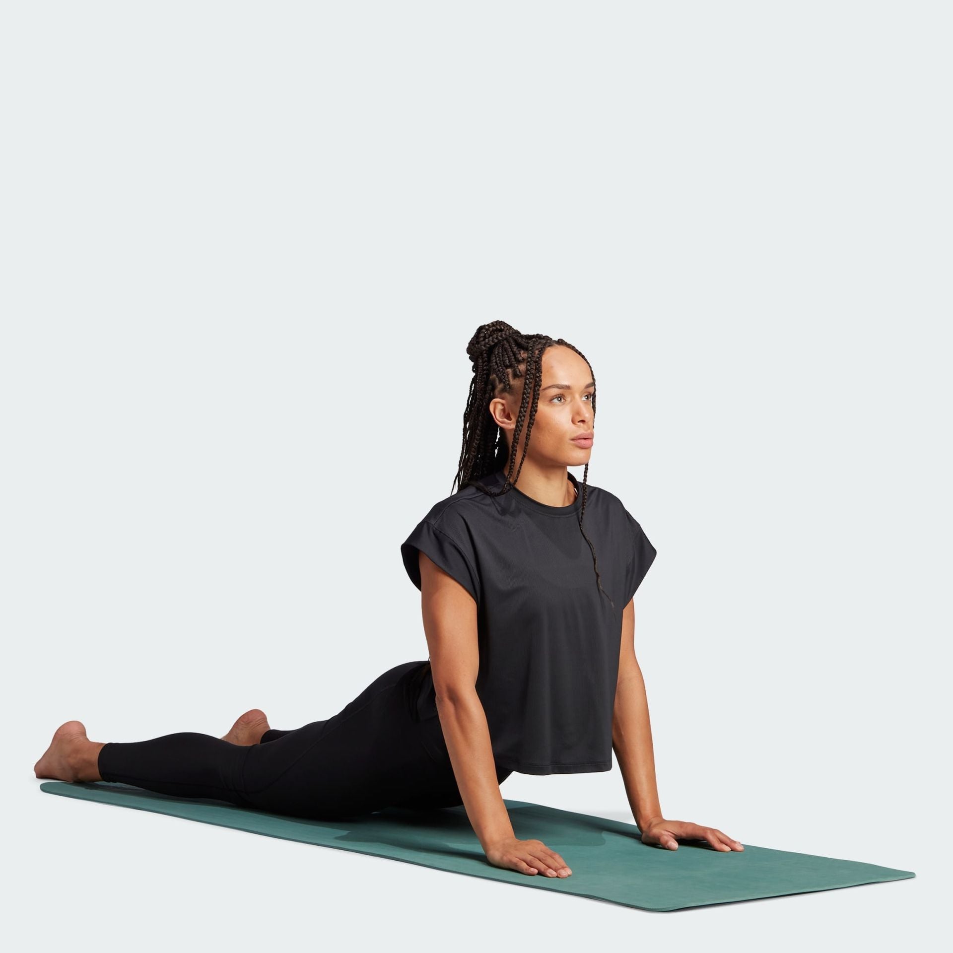 Vinyasa yoga, barre or Pilates, this Studio Tee supports your every move. AEROREADY manages moisture to keep you dry during long holds and balance poses. Feminine cutlines and sleeve details make it sporty and stylish.