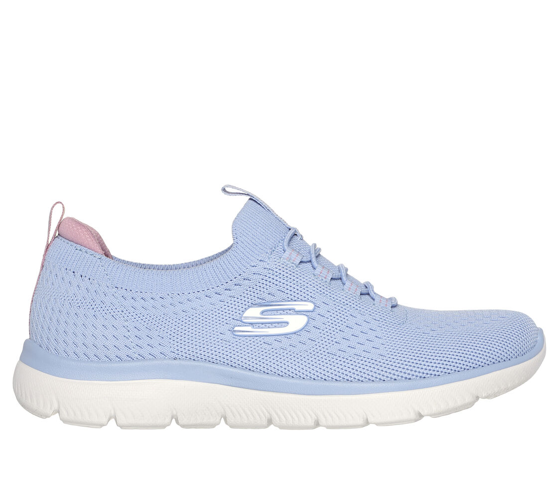 Reach the height of comfort and athletic style with Skechers Summits. This stretch-laced vegan design features a Stretch Fit® engineered knit upper and a cushioned Skechers Memory Foam™ comfort insole.
