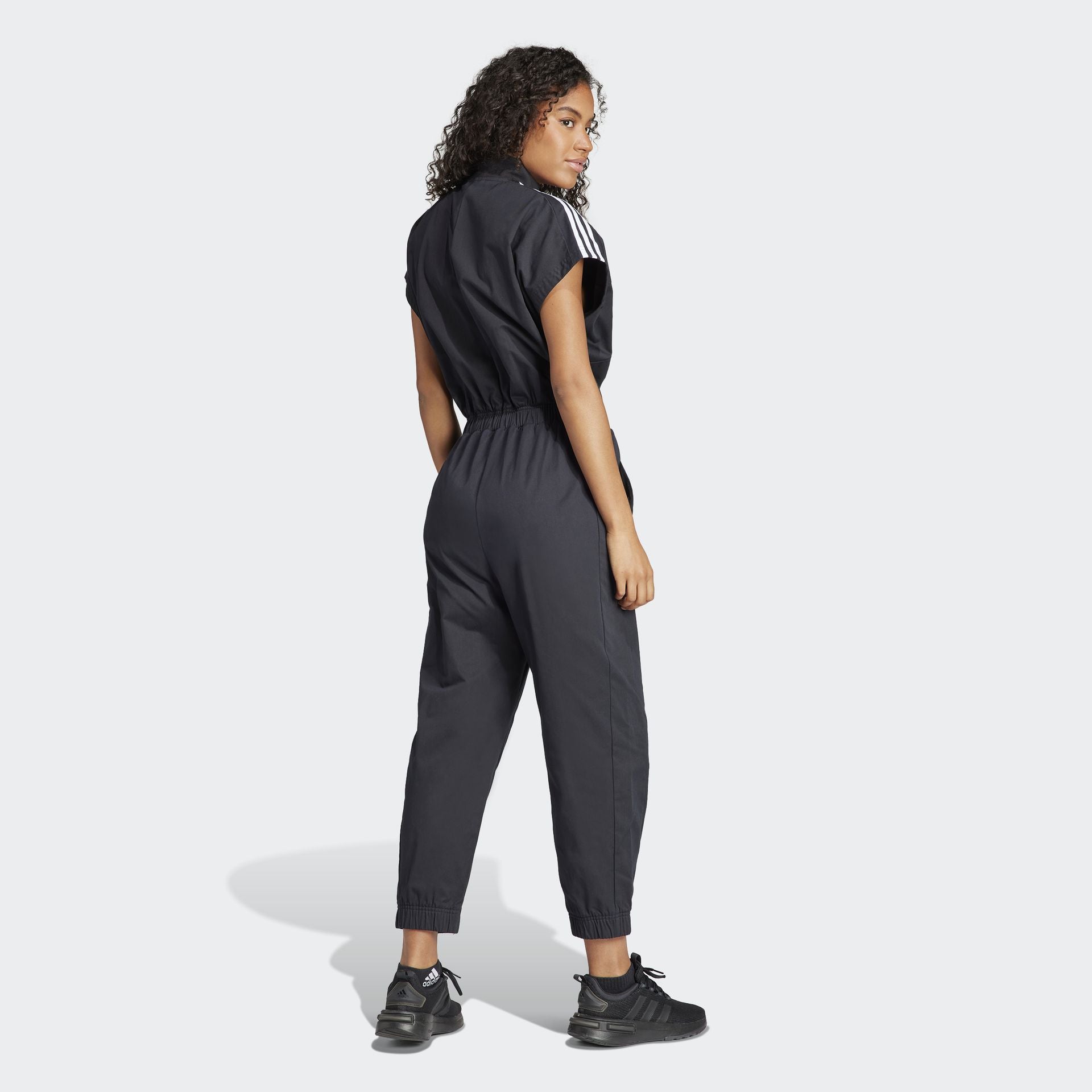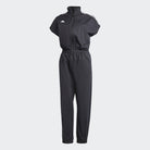 However fast-paced your day, this adidas jumpsuit can keep up. It's made from twill fabric for a soft feel. The relaxed fit is gathered in by a flexible waistband, giving you a flattering silhouette without compromising on comfort. This versatile piece teams equally well with sneakers or sandals.
