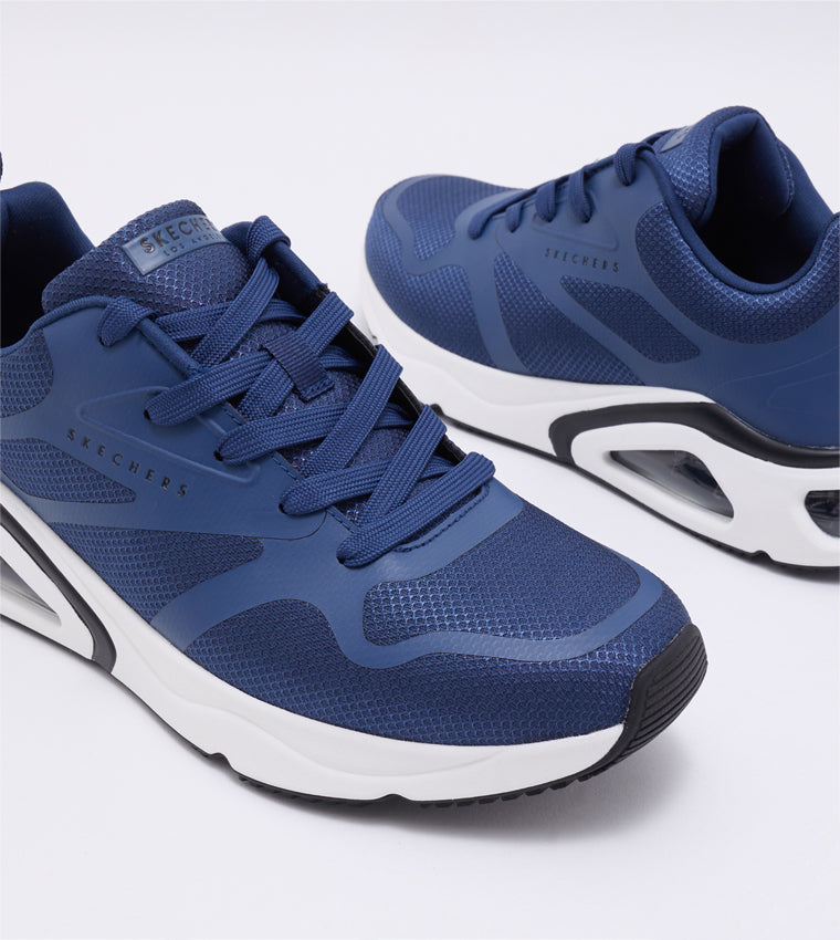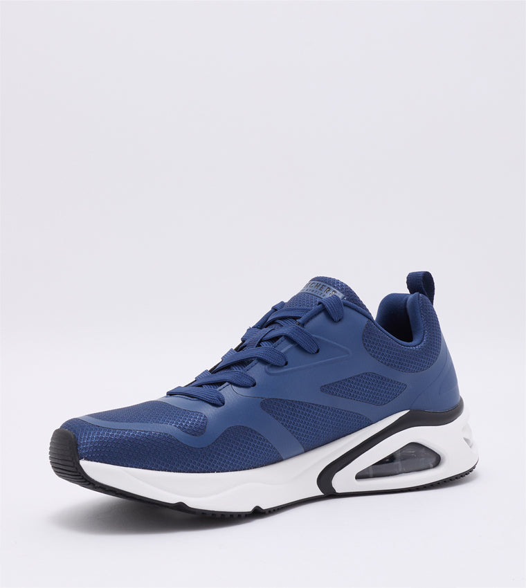 Take your style to the next level with Skechers Street Tres-Air Uno - Revolution-Airy. This athletic inspired lace-up features a sleek closed mesh upper with hotmelt overlay details, a Skechers Air-Cooled Memory Foam insole and a visible Skech-Air airbag.