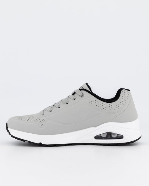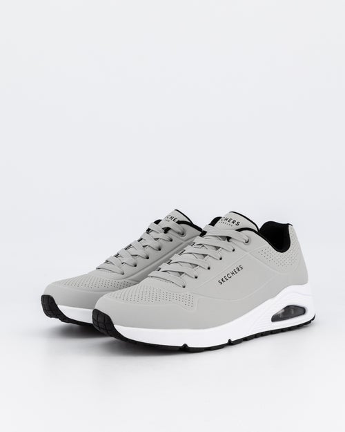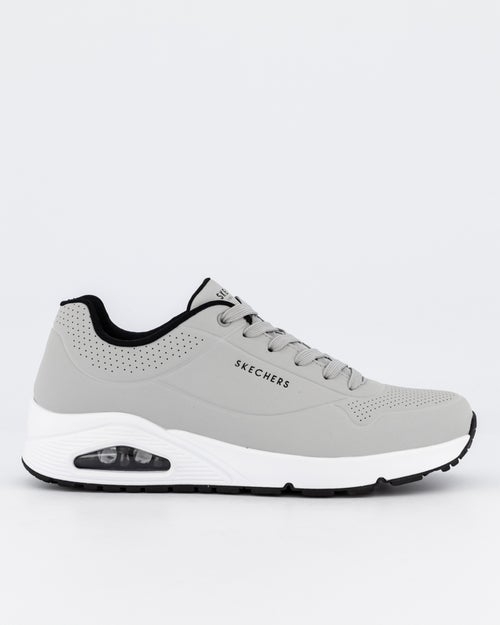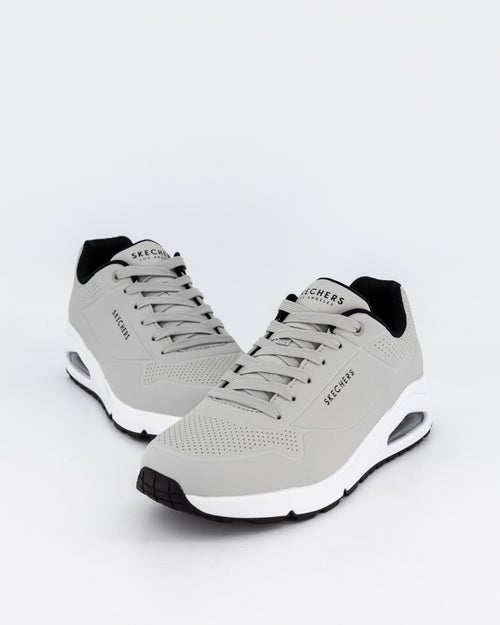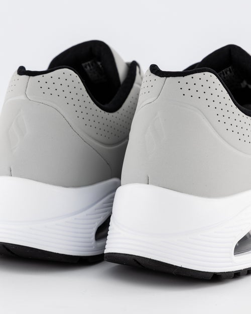 Classic air-cushioned comfort meets a fresh update in the Skechers Street™ Street Uno - Stand on Air shoe. This lace-up fashion sneaker features a smooth perforated synthetic upper with an Air-Cooled Memory Foam® insole and Skech-Air® visible air-cushioned midsole.