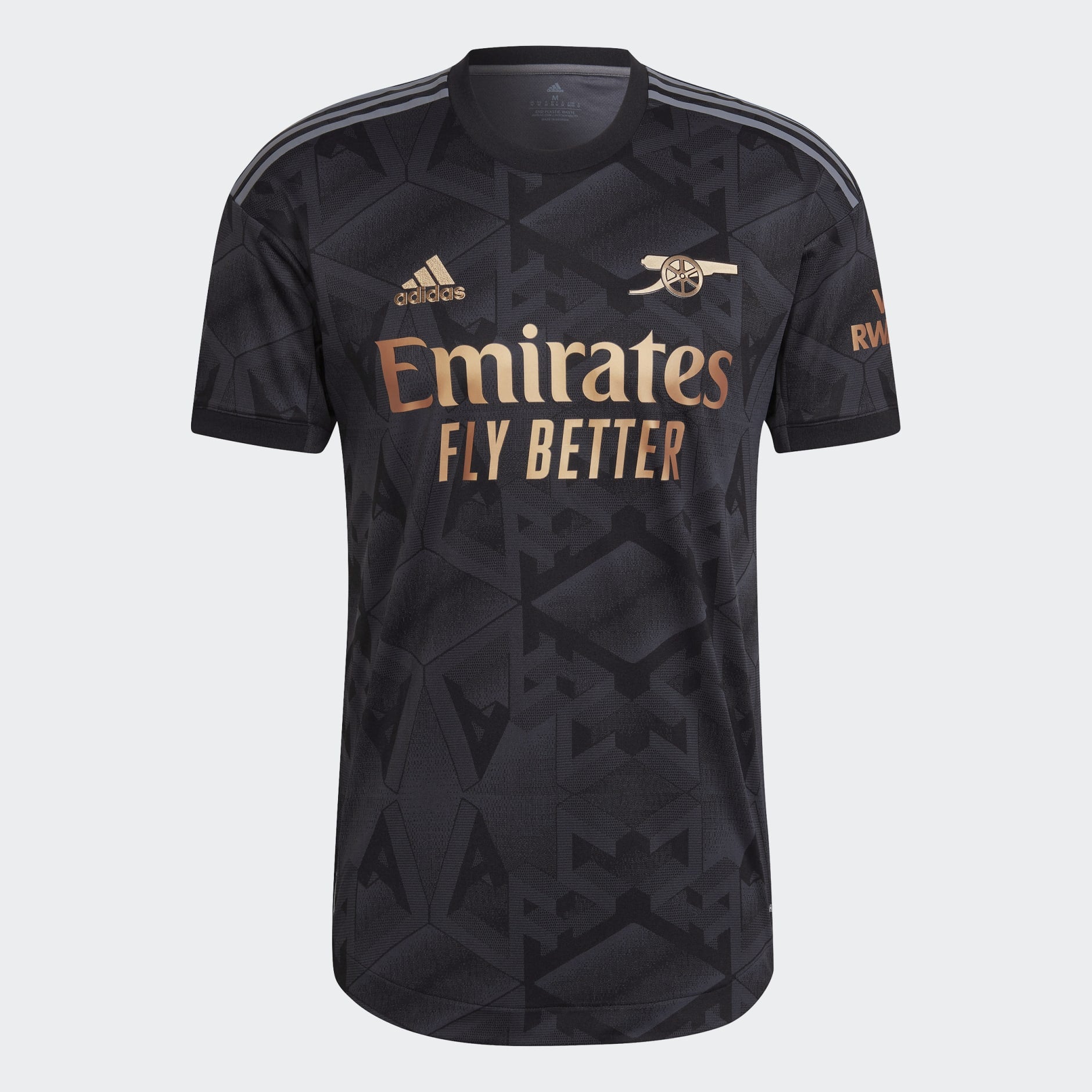 The cannon badge. The concrete sculpture-inspired signoff. All the way down to its bronze trim, this adidas Arsenal away authentic jersey comes loaded with Emirates Stadium landmarks. At its heart, it's designed for the most important part of the match day experience: the football itself. Cooling HEAT.RDY and low-weight details ensure it excels on the pitch. Made with 100% recycled materials, this product represents just one of our solutions to help end plastic waste