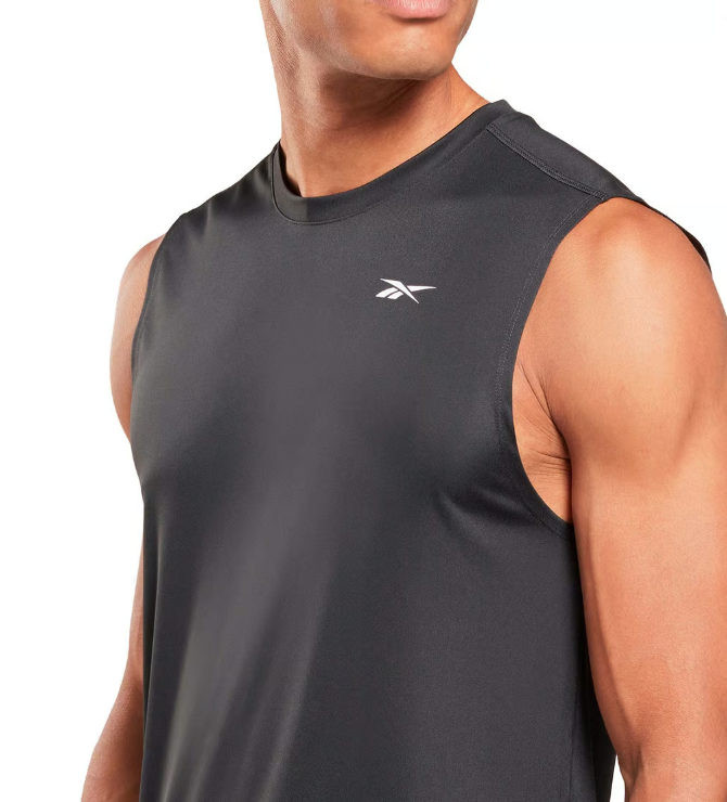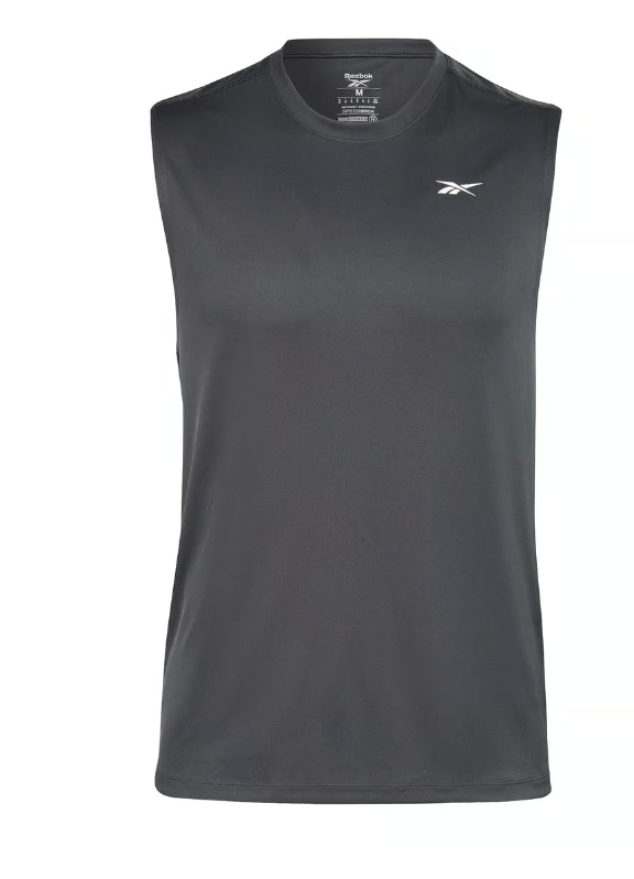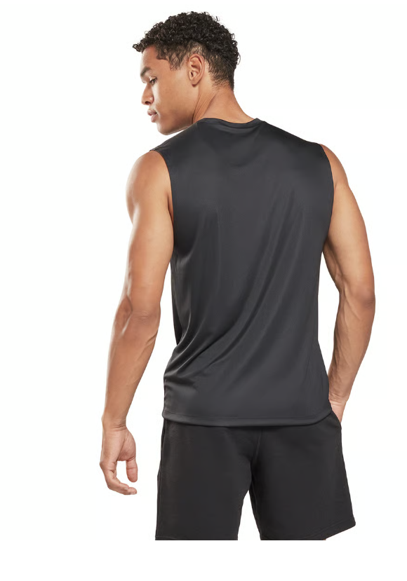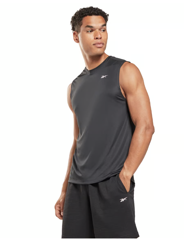 The Reebok Training Tech Sleeveless Tank Top is made with a Speedwick fabric that will help disperse sweat and keep your skin cool and dry. The mesh panel on the back increases airflow when your workouts heat up.