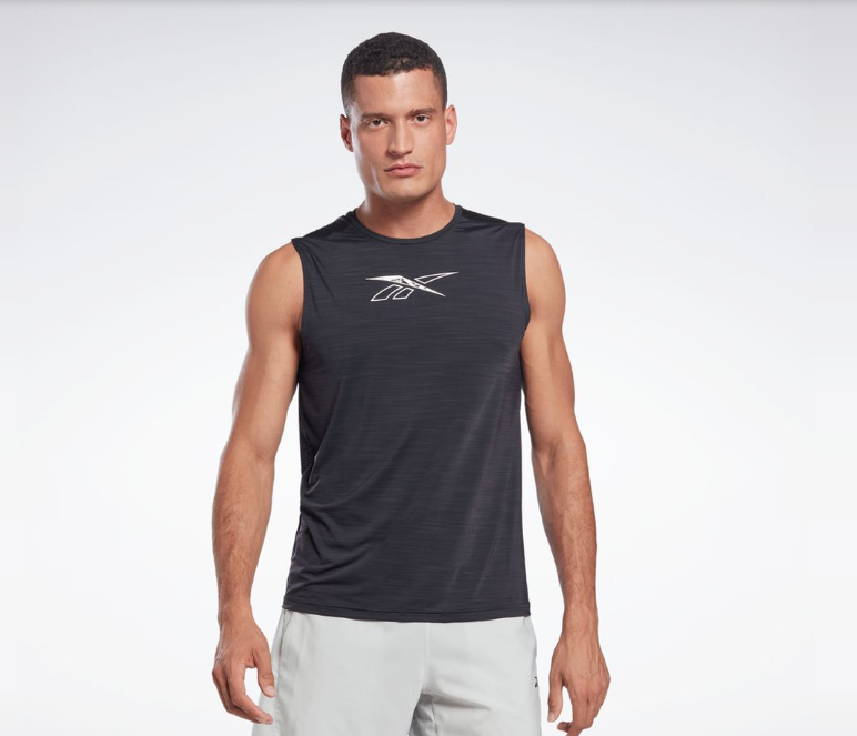 Keep cool when your workout heats up. This men's Reebok training tank top is made of ACTIVCHILL for targeted cooling where you need it. The mesh back gives a breathable feel, and the slim-fit design ensures that nothings gets in the way of your moves.