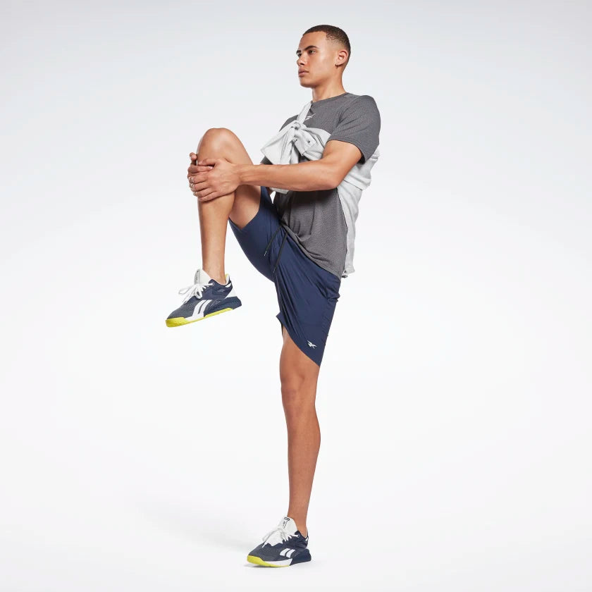 Pull on these men's Reebok shorts and get ready for your workout in record time. An external drawcord lets you adjust the fit and adds a hit of beach style. Speedwick fabric moves moisture away from your body so you stay comfortable and dry as you train. Side vents along the hem make it easy to move.