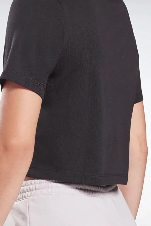 COTTON T-SHIRT, PART OF REEBOK'S RECYCLED COLLECTION This Reebok women's T-shirt keeps you comfortable at home or on the go. Made from cotton-blend jersey and features a large Reebok Vector logo on the chest for an athletic look. Our cotton products are sourced entirely from sustainable cotton farming and made with at least 50% Better Cotton.