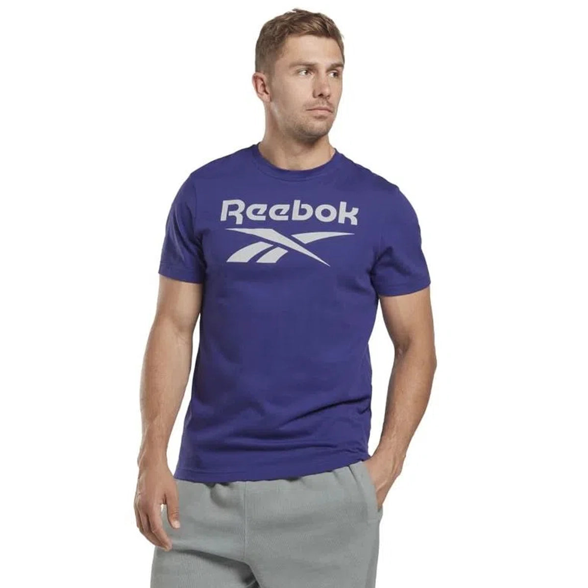 Show 'em what you're all about. Fitness is a lifestyle, and this men's Reebok tee sports a big Vector logo that puts your pride front and centre. The soft cotton jersey delivers everything you know and love about your favourite tees. Our cotton products are entirely sourced through sustainable cotton farming and are made with at least 50% Better Cotton.