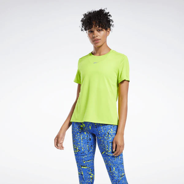 Running stairs at the park or doing a quick track workout. However you get your miles in, this women's Reebok t-shirt keeps you dry. Speedwick wicks sweat, and the back mesh panel adds ventilation where you need it most. Reflective details shine bright from dawn to dusk.
