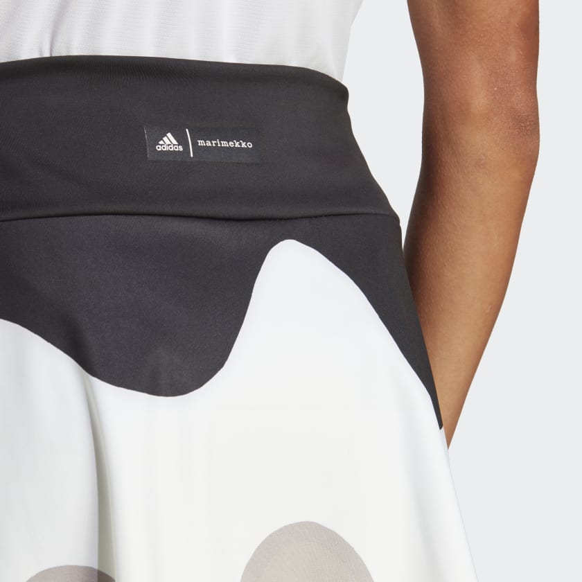 Designed to empower and inspire. This adidas x Marimekko tennis skirt is all about self-expression on court. Dressed in one of the world-famous design house's bold prints, it'll keep you comfortable and confident with a wide waistband and separate inner tights. Stretchy fabric and translucent pleats on the sides allow for increased freedom of movement, so you're always where you need to be. AEROREADY absorbs moisture to ensure your game stays as vibrant as your look.