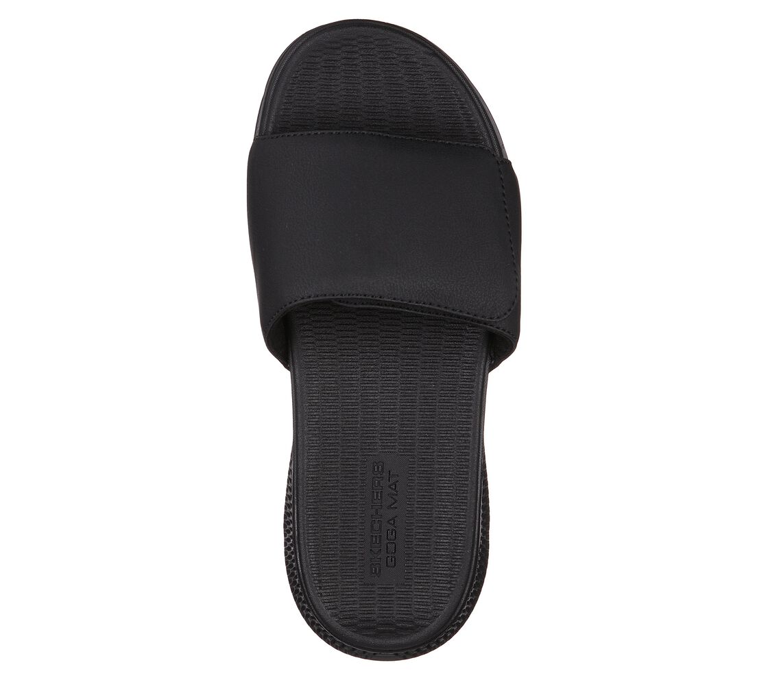 Keep cool in super light comfort wearing the Skechers GO Consistent - Watershed sandal. This sporty slide sandal features a smooth synthetic adjustable upper, Goga Mat contoured comfort footbed and ULTRA LIGHT cushioned midsole.
