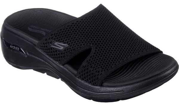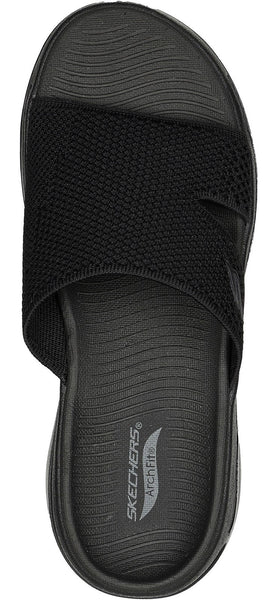 Delight your feet with supportive comfort and easygoing style wearing Skechers GO WALK Arch Fit Sandal - Joyful. This Arch Fit designed slide sandal features a mesh knit upper, a contoured Goga Mat footbed and lightweight ULTRA GO cushioning. It is complete with a flexible footbed for traction underfoot.