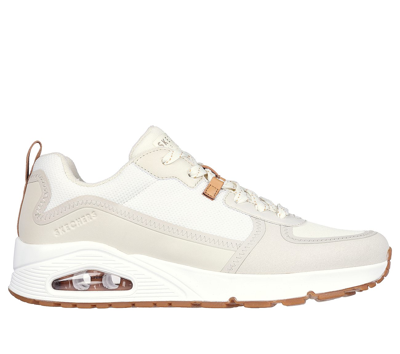 Stay cool with a trendy classic in Skechers Street™ Uno - Layover. This athletic fashion lace-up features a synthetic duraleather and textile upper with hotmelt zigzag details, a Skechers Air-Cooled Memory Foam® insole and a visible Skech-Air® midsole.Product Features