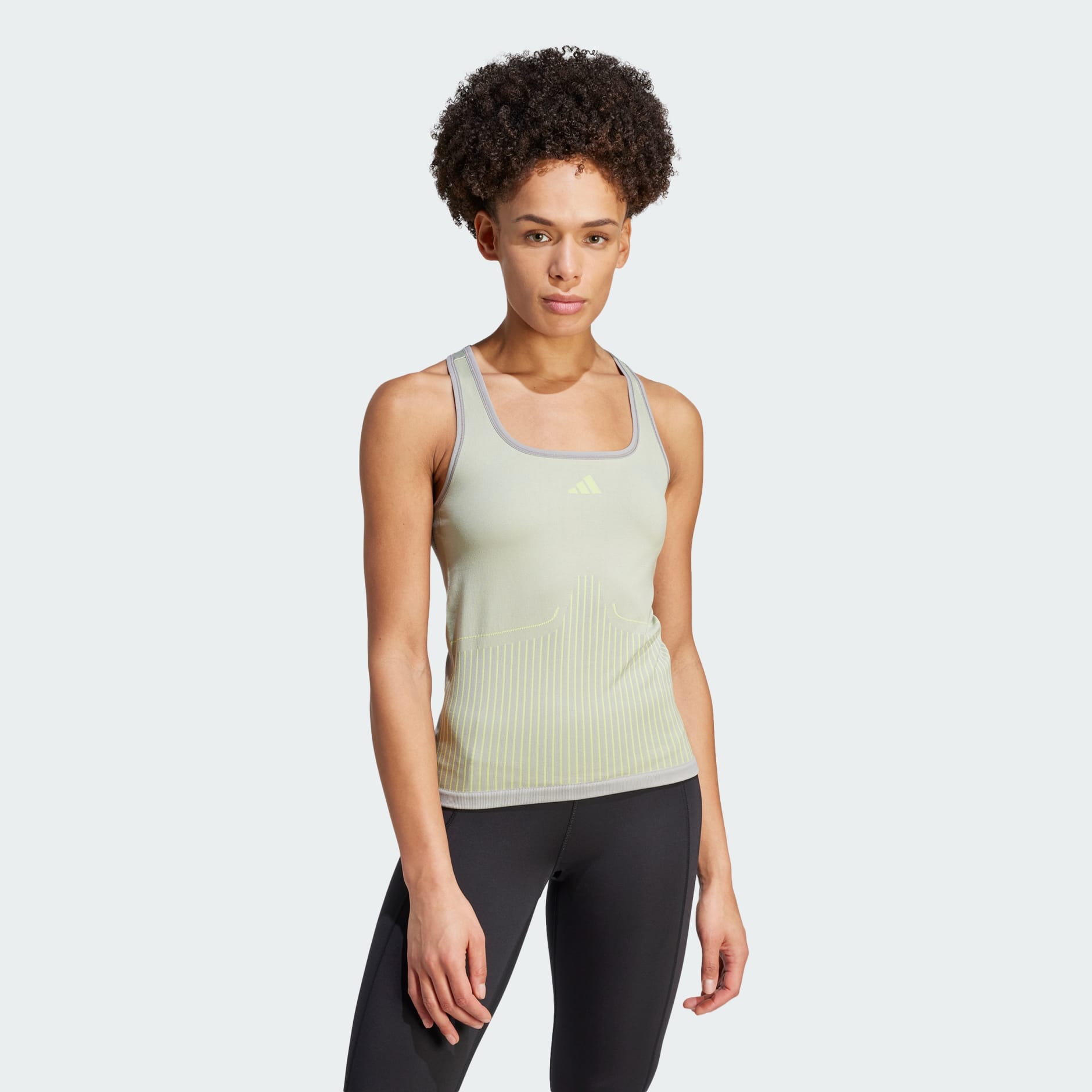Seamless design and adidas AEROKNIT combine to create a tank top that will keep you going. The moisture-managing performance knit fits snug for second-skin comfort, and body-contouring lines flatter your form as you move through your session. A racerback gives you extra breathability as the intensity builds. Made with a series of recycled materials, and at least 70% recycled content, this product represents just one of our solutions to help end plastic waste.