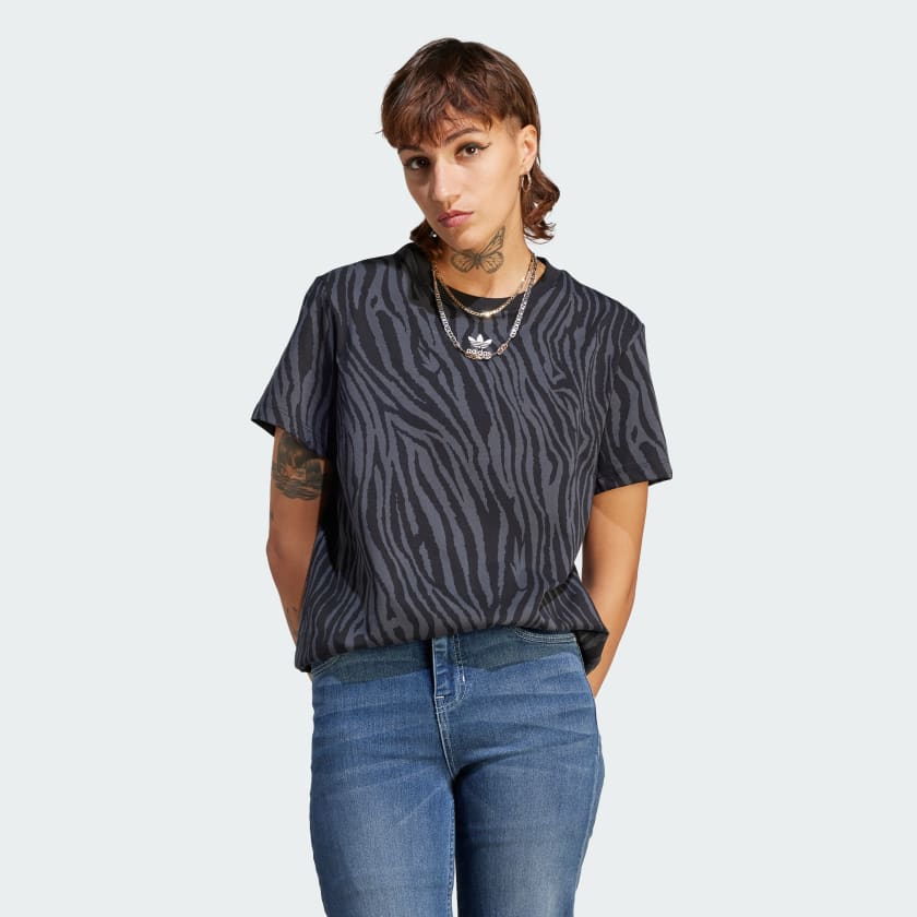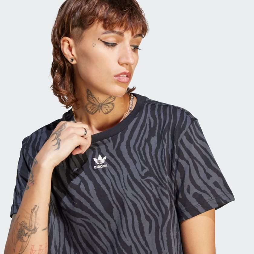 Let yourself be loud. From first glance, this adidas tee stands out thanks to a bold allover graphic zebra print. Cotton jersey fabric provides just the right amount of stretch for a comfortable fit. A Trefoil logo on the chest completes the look.